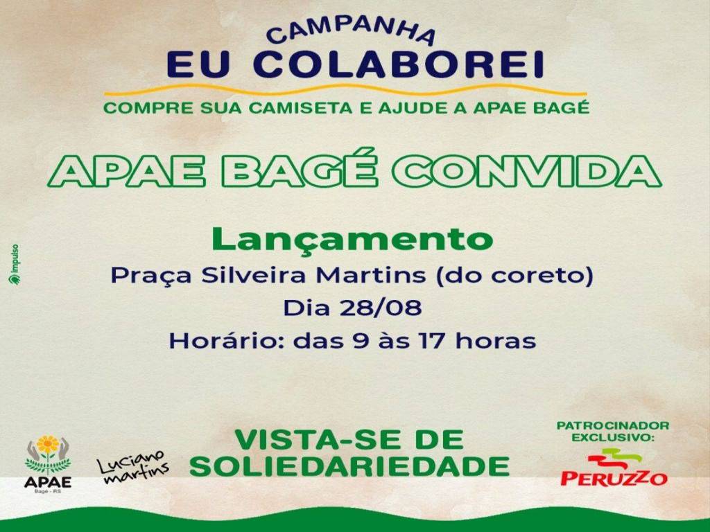 Campanha APAE - Bagé "Eu Colaborei" 2021, tem seu lançamento sábado dia 28 de agosto de 2021.