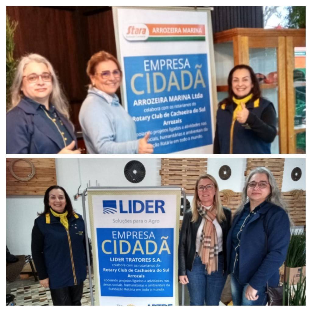 As empresas Arrozeira Marina LTDA e Líder Tratores SA, as quais são parceiras do Rotaty Club de Cachoeira do Sul Arrozais como Empresas Cidadãs, participaram da 22 FENARROZ que aconteceu de 14 a 19 de junho de 2022 na Cidade de Cachoeira do Sul. São duas empresas de grande importância para o agronegócio da região e estão sempre participando de projetos sociais. Na oportunidade as empresas foram prestigiadas pela presidente do Rotary Club de Cachoeira do Sul Arrozais 2021/22 Darlene Lisboa e sua vice-presidente Elen Ferreira.