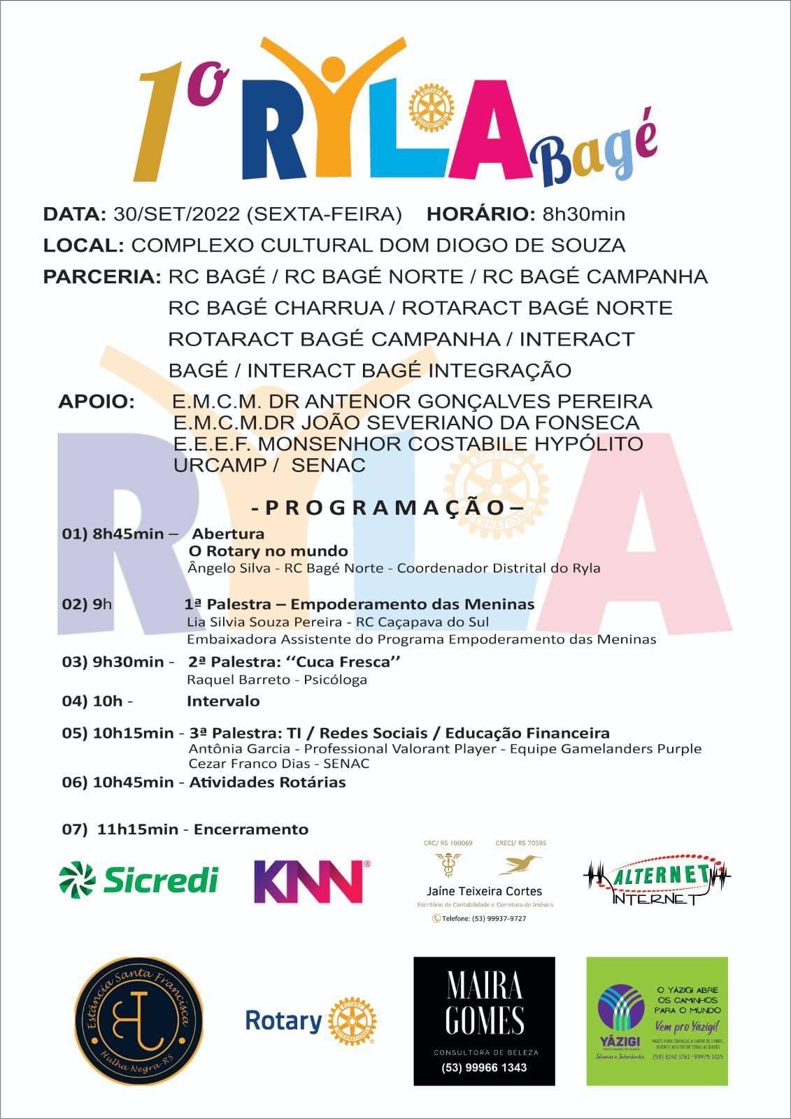 1o. Ryla Bagé - Clubes de Rotary, Rotaract e Interact Organizam - neste dia 30 de setembro de 2022