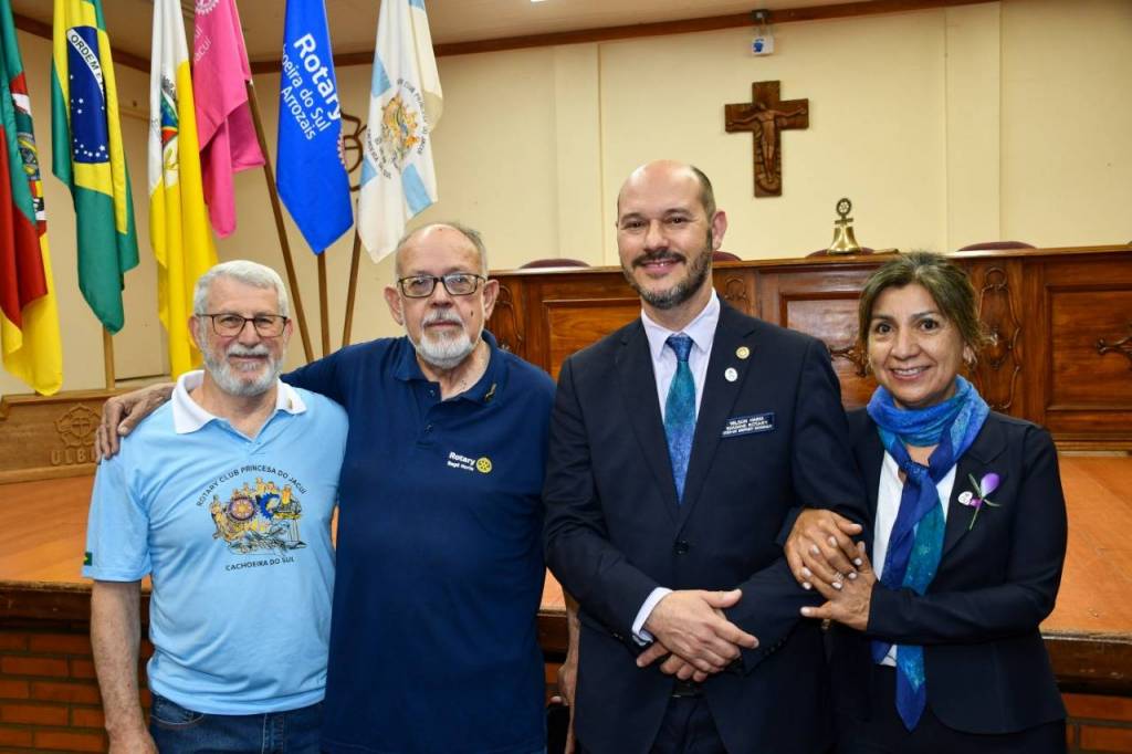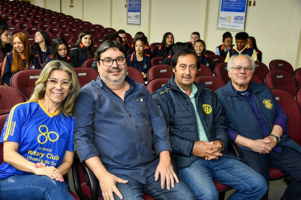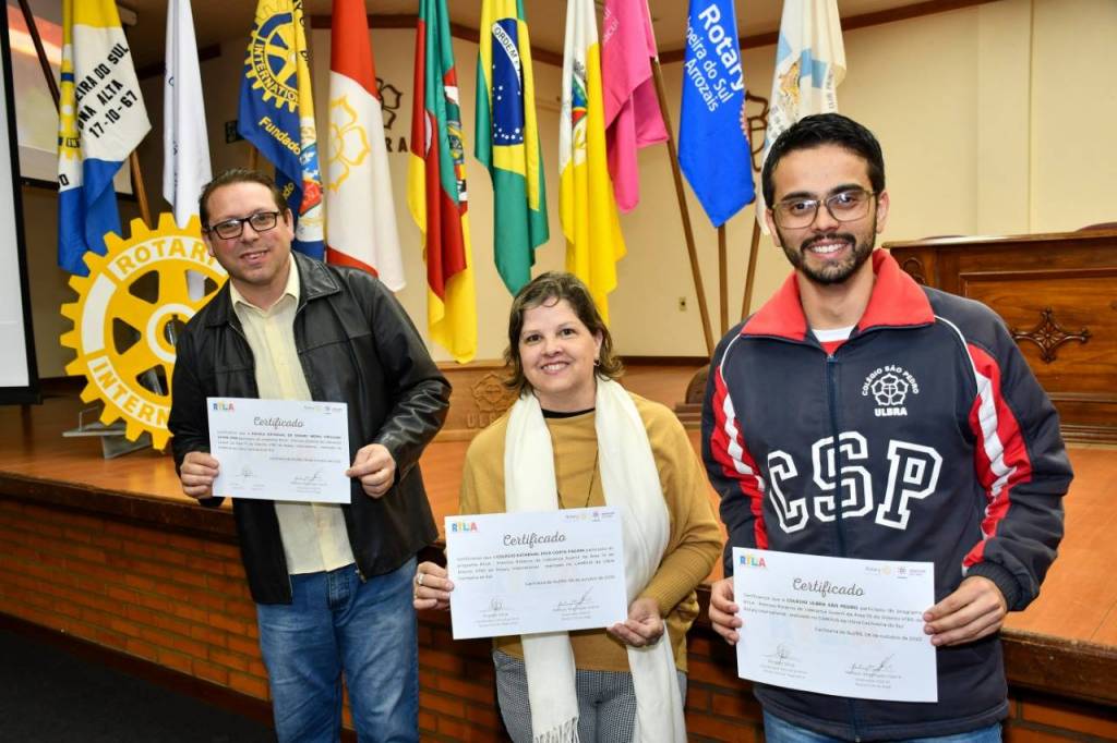 Estavam presentes o Representante Distrital e coordenador do RYLA Ângelo Silva do RC de Bagé Norte, a Diretora da ULBRA Adriana Porto, a Coordenadora Regional de Educação Elaine Dalcin, o Sr. Cezar Mozart Vasconcelos Pedroso representando a Secretaria Municipal de Educação e também Rotariano do RCC Princesa do Jacuí, o Governador do Distrito 4780 ano rotário 2022-23 Nelson Machado Harm do RC de Bagé.