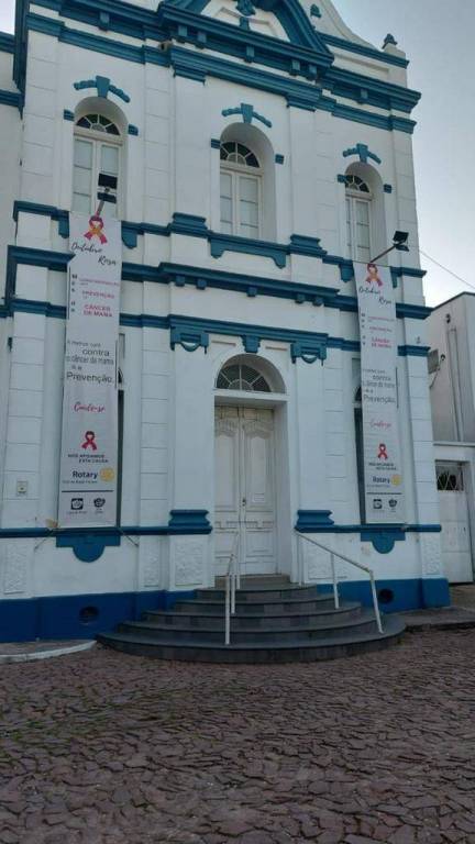 O Rotary Club de Bagé Pampa presente no Outubro Rosa! Nós apoiamos essa causa! Durante todo o mês de Outubro faixas com mensagens sobre a importância da prevenção e do diagnóstico precoce no tratamento do câncer foram instaladas na Capela da Santa Casa de Caridade de Bagé, além de uma iluminação em rosa chamando a atenção das pessoas que transitam pelo local.