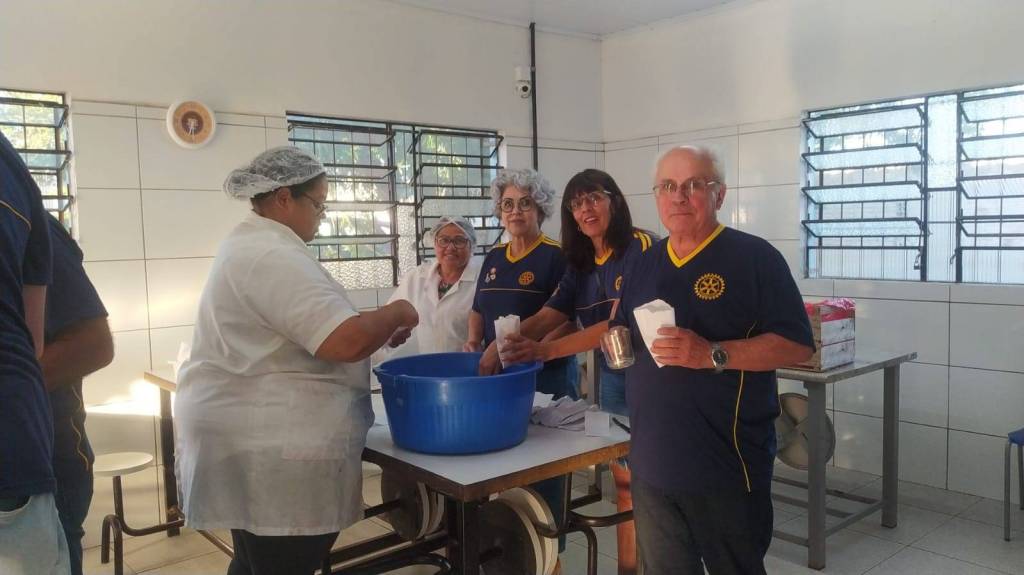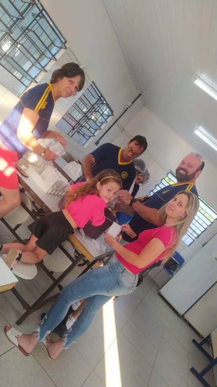 Os Rotarianos serviram pipocas e suco para os presentes, atendendo a todos, com apoio dos funcionários, professores e equipe diretiva da EEEF Marieta.
