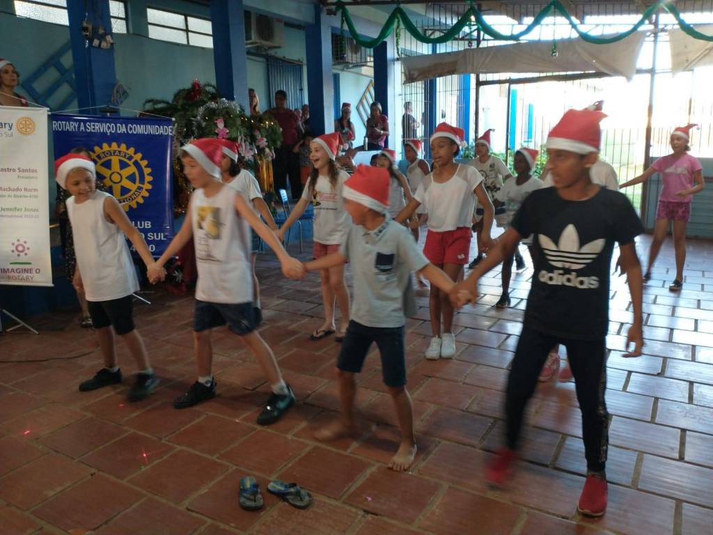 O final da última quarta-feira foi especial e de muitas emoções na Escola Estadual de Ensino Fundamental Marieta Ribeiro de Almeida. No último dia 14 de dezembro, o Rotary Club de Cachoeira do Sul realizou o seu Natal Rotary Cachoeira do Sul na Comunidade junto a Escola Marieta, localizada no bairro Marina, em Cachoeira do Sul.