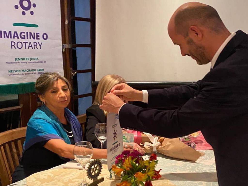 Como forma de agradecimento, foram entregues ao Governador uma doação a Fundação Rotária de U$$1,000.00 (Título Paul Harris) mais a doação a Polio plus de U$$100 + U$$1,00 por associado. Á sua espesa delia, foi entregue um livro de receitas elaborado pelas companheiras do clube, como forma de carinho.