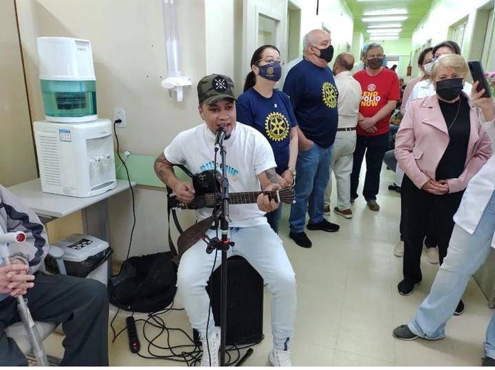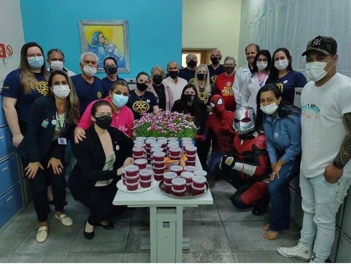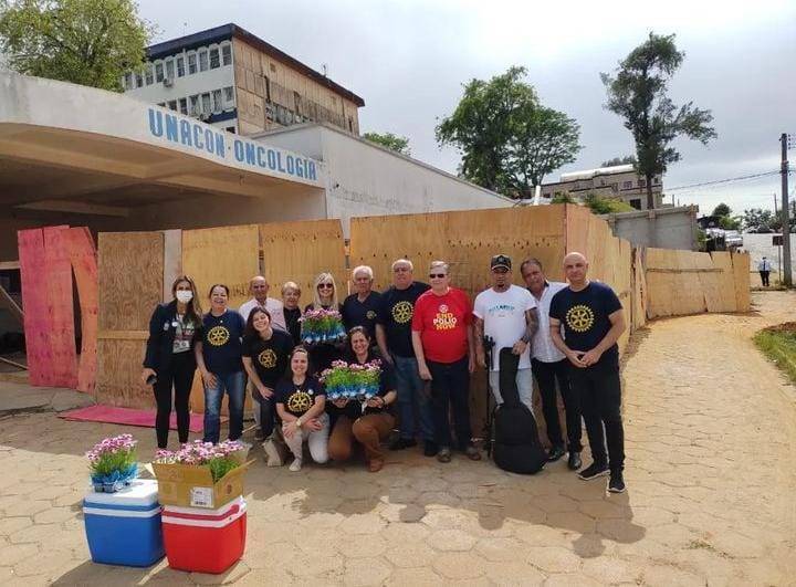Na sexta feira dia 11 de novembro o Rotary Bagé Charrua em parceria com o Rotary Bagé e o Rotary Bagé Campanha deram continuidade ao Projeto Novembro Azul - Oferecemos aos Pacientes Oncológicos, familiares e colaboradores no serviço de Quimioterapia da Santa Casa de Bagé - Gelatina e uma muda de flor que representa esperança.