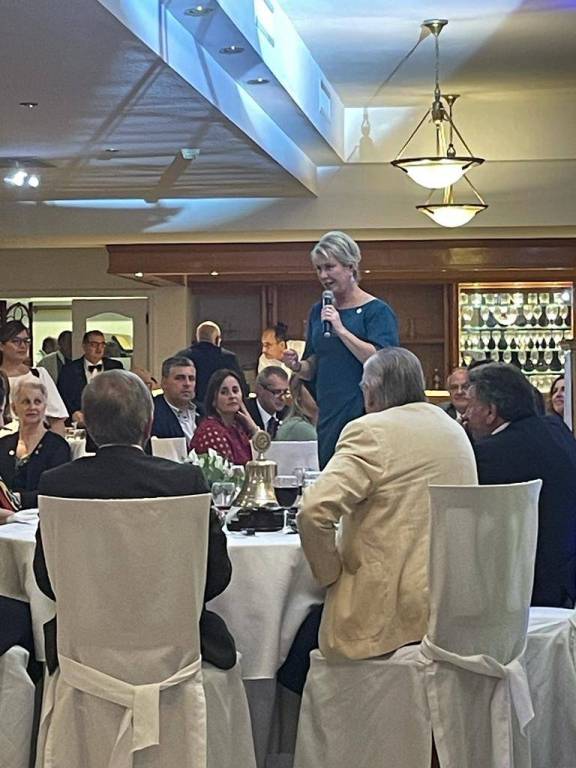 A Presidente do RC de Bagé Pampa teve a honra de conhecer a Presidente de Rotary International Jennifer Jones durante o jantar oferecido pelo Distrito 4975 - UY representado pelo Governador Edgardo Gardano, em sua visita oficial ao país, com presença do Diretor de RI Júlio César Silva-Santiesteban. Uma experiência única, onde a nossa Presidente teve a oportunidade de falar um pouco do nosso trabalho á atual Preseidente de RI, além de fazer a entrega da flâmula do clube. Também estiveram presentes representantes da Argentina, Chile, Peru e Canadá.