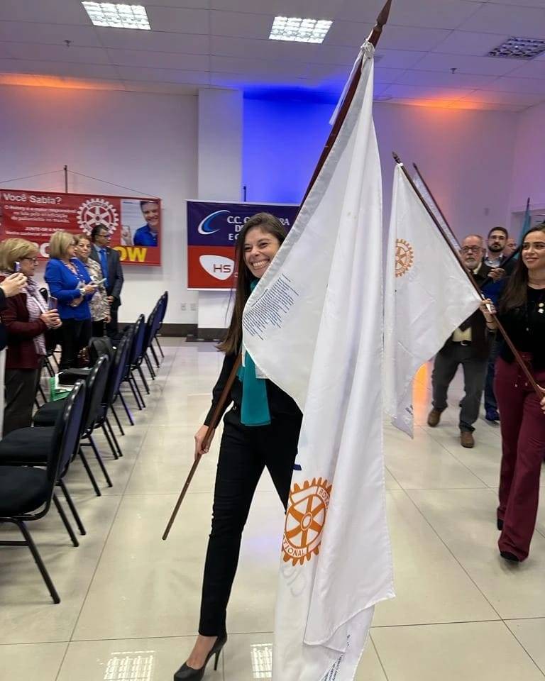 Nossa presidente Tais carrega nossa bandeira na abertura da 33° Conferência do Distrito 4780.