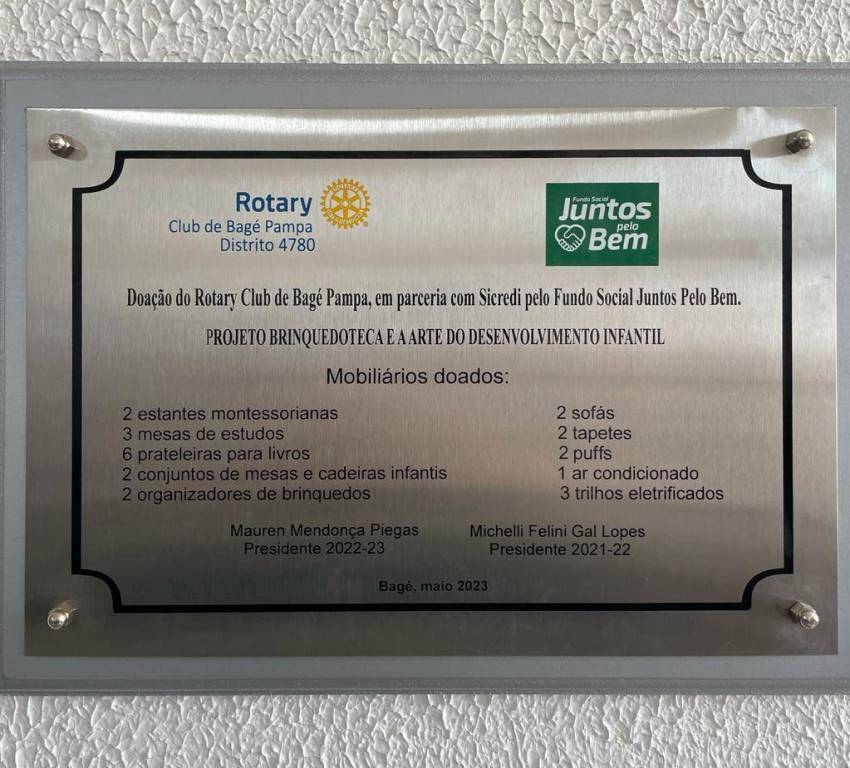 Na tarde de hoje foi entregue oficialmente pelo Rotary Club de Bagé Pampa e Sicredi Liberdade o Projeto Brinquedoteca e a Arte do Desenvolvimento Infantil a Unidade de Acolhimento Institucional Lar dos Irmãos Santo Estevão. O Clube juntamente com os recursos do Fundo Social Juntos pelo Bem doou inúmeros mobiliários para estruturar a sala de convivência e de estudos das crianças acolhidas pelo lar, oferecendo um espaço mais aconchegante e que ofereca uma melhor qualidade de vida e bem estar a todas elas. O Lar dos Irmãos é responsável pelo acolhimento, em média, de 20 crianças e adolescentes que tiveram seus direitos ameaçados ou violados e que estão sob medida protetiva de acolhimento, com isso, possui um fluxo constante de acolhimentos e desacolhimentos dependendo da família de cada criança/adolescente e a capacidade de recebê-los novamente ou não. O objetivo desse projeto é proporcionar um ambiente físico que possa atender as necessidades de desenvolvimento das crianças na primeira infância e as demais faixas etárias. Uma casa mais acolhedora e um ambiente planejado que atende as necessidades de acolhimento, certamente é um facilitador de vínculos de afeto e de desenvolvimento.