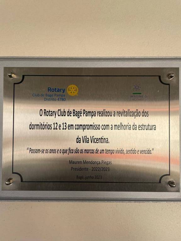 O projeto realizado pelo Rotary Club de Bagé Pampa realizou a reforma completa de dois dormitórios e o banheiro de uma das dependências mais precárias da instituição, viabilizando um local acolhedor, aconchegante e muito mais humanizado para as senhoras que ocupam esta dependência, firmando o compromisso do clube em bem atender às necessidades da comunidade.