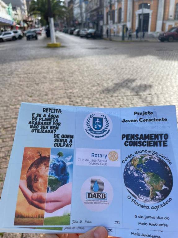 E no dia de hoje foi dia de encerramento do RYLA. Nesta segunda etapa de um trabalho que começou em Abril e no dia de hoje fizemos o encerramento com a distribuição dos flayers de divulgação da campanha de conscientização do Meio Ambiente - A Água. Na ocasião o RC de Bagé Pampa juntamente com o Daeb e Escola Municipal Cívico Militar João Severiano da Fonseca realizaram a panfletagem com o material desenvolvido pela vencedora do prêmio RYLA, Júlia.