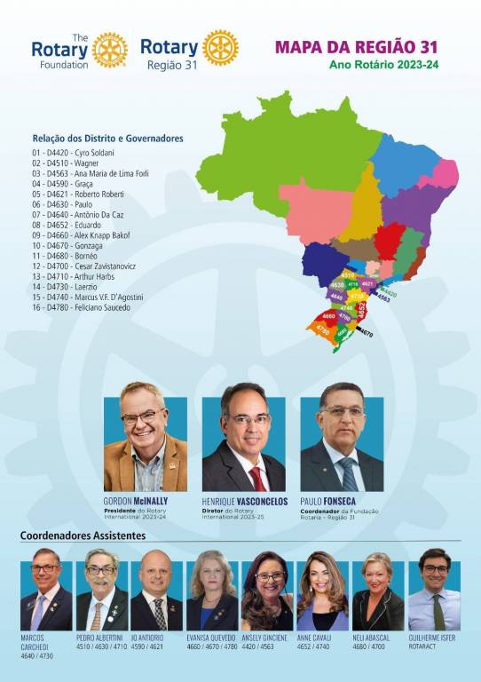 A Gov. Neli Lúcia Coradini Abascal faz parte da Equipe da Coordenadoria Regional da Fundação Rotária - Região 31 - 2023/24
