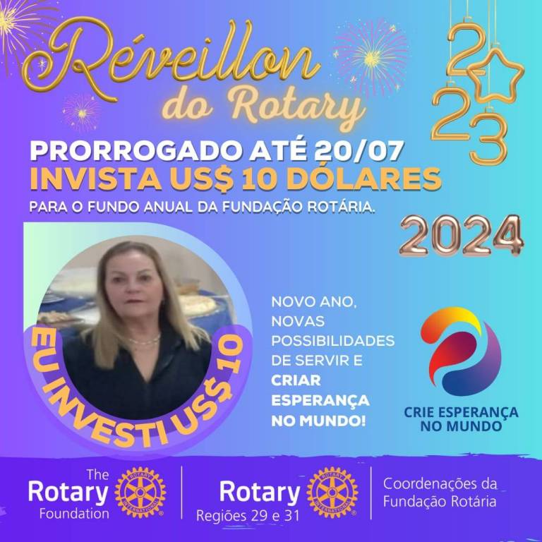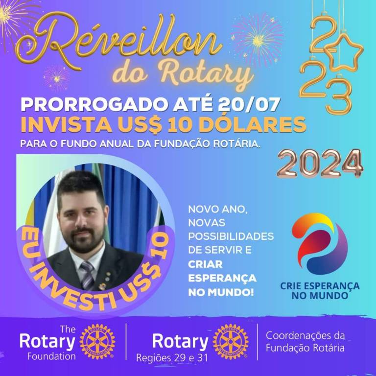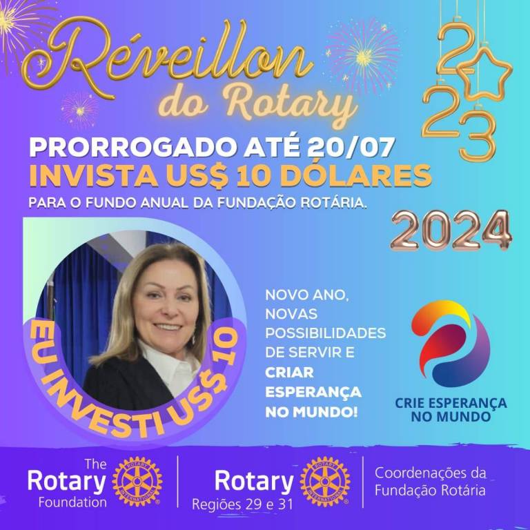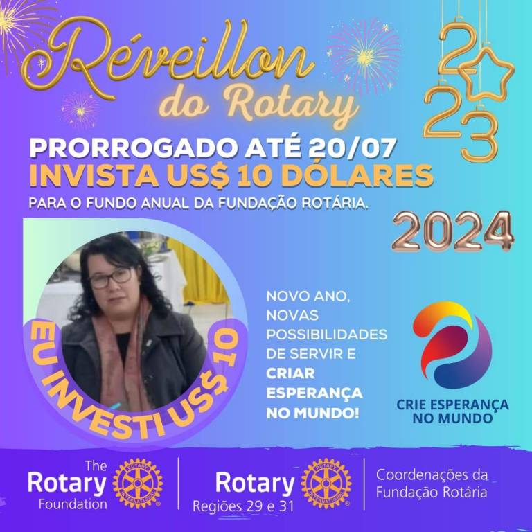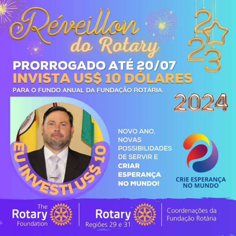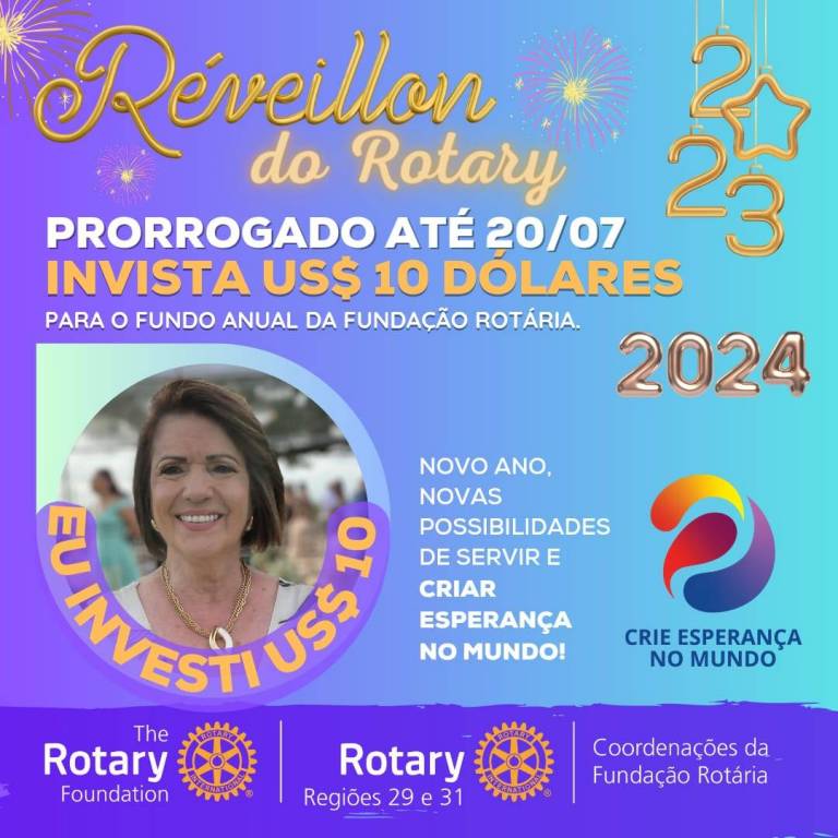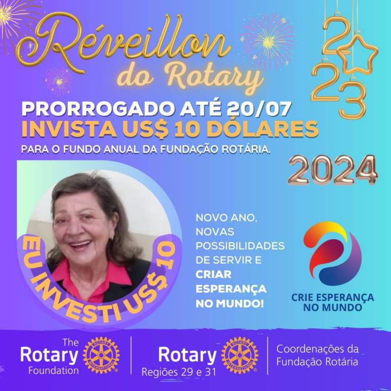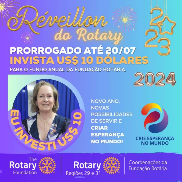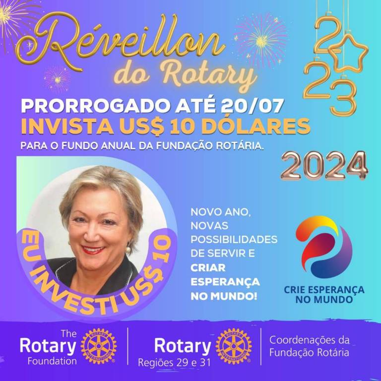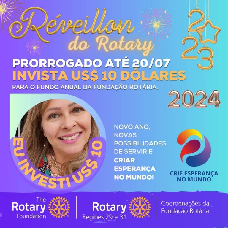 Vamos juntos criar esperança no mundo, invista 10 dolaris na fundo anual para Fundação Rotária.
