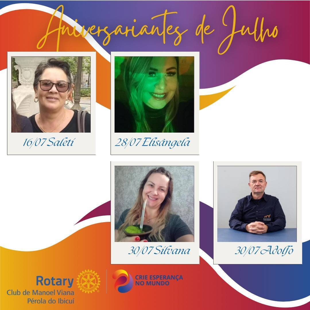 No mês de Julho o Rotary Club de Manoel Viana Pérola do Ibicui comemora o aniversário de 4 companheiros!