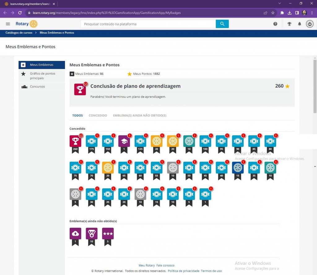 Chegando assim a 1º Colocado no Distrito 4780 na Tabela de Classificação de Pontos da Central de aprendizagem do my Rotary, 18º colocado ná Zona 23, e em 116º colocado no ranque geral em uma escala global do Rotary International.