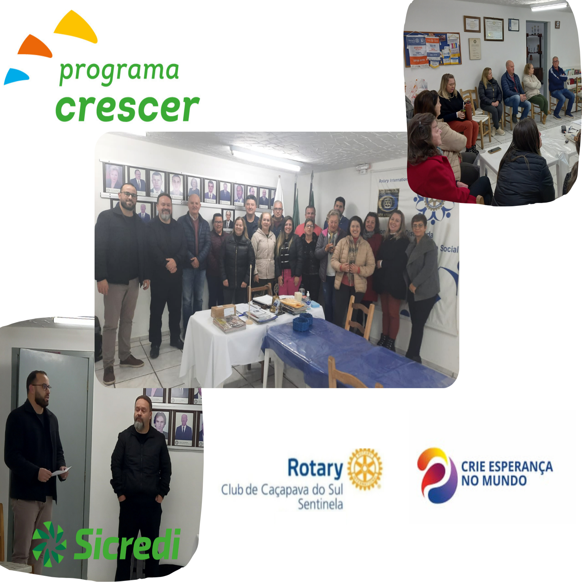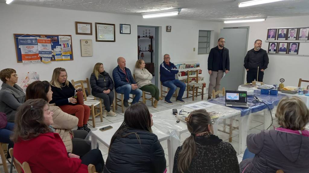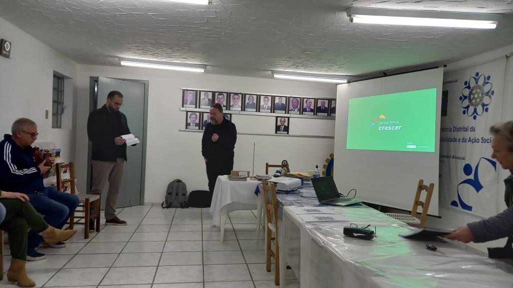 Ná última reunião ordinária recebemos a visita dos colaboradores do Sicred Região Centro, que nos apresentaram uma bela palestra do Programa Crescer, para nos apresentar e explicar sobre o programa fundo social edição 2023.