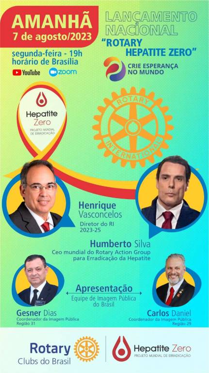 Na última segunda-feira dia 07 de agosto, foi transmitida via plataforma Zoom e também pelo YouTube o início da campanha hepatite zero ano 2023, os companheiros do Rotary Club de Caçapava do Sul-Sentinela acompanham a transmissão via YouTube enquanto a companheira Rosa Vivian foi uma das 100 pessoas a participar da transmissão via zoom.