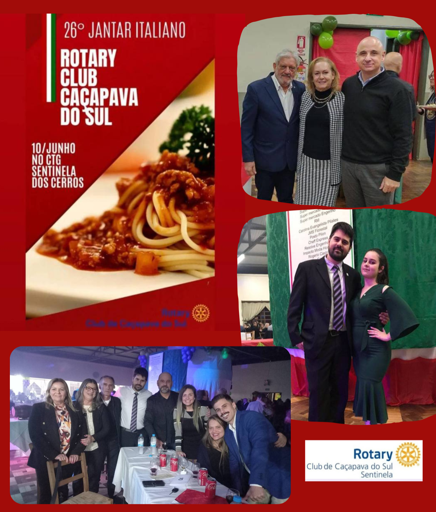 No ultimo sabado, dia 10 de junho de 2023 ocoreu no CTG Sentinela Dos Cerros o 26° edição do Jantar Italiano, promovido pelo Rotary Club Caçapava do Sul. Os Companheiros do Rotary Club Caçapava do Sul- Sentinela, participaram desse evento Marcando sua Presença com muita e motivação.