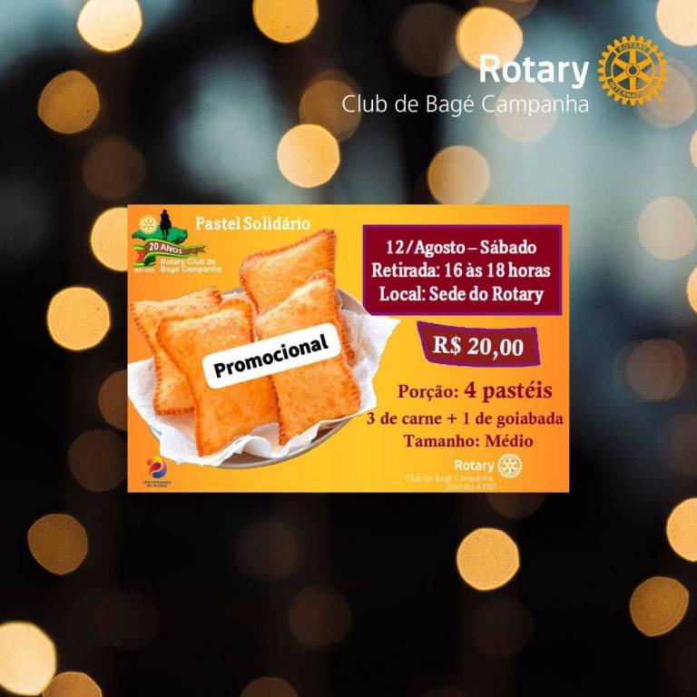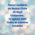 Aconteceu neste dia 12 de agosto de 2023, o evento "Pastel Solidário" do RC de Bagé Campanha. Na ocasião todos os pastéis produzidos foram vendidos. Agradeçemos a todos que participaram de alguma maneira para o sucesso do evento. Renda para os projetos sociais do Clube.