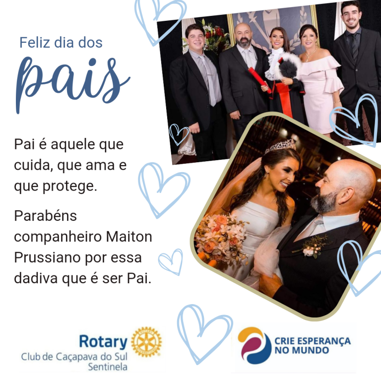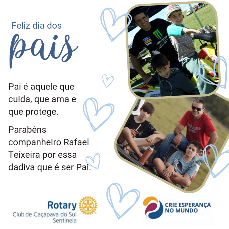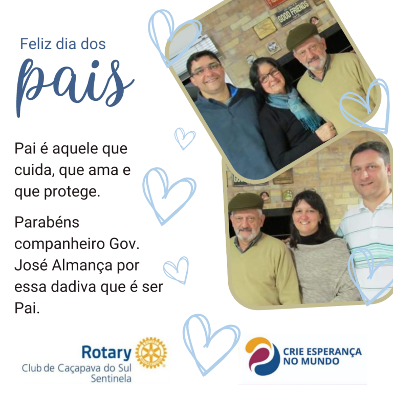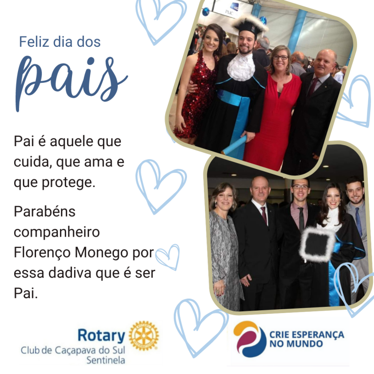 A presidente Lia Pereira em nome do Rotary club de Caçapava do Sul-Sentinela, juntamente com a sua comissão de imagem pública, presta essa simples mais singela homenagem aos companheiros que possuem essa dadiva que é ser Pai.