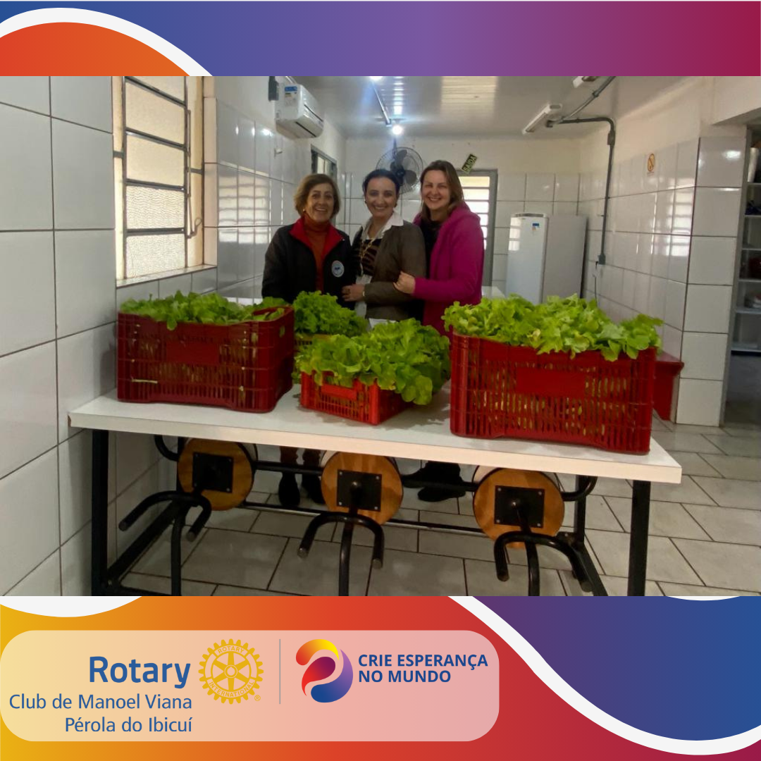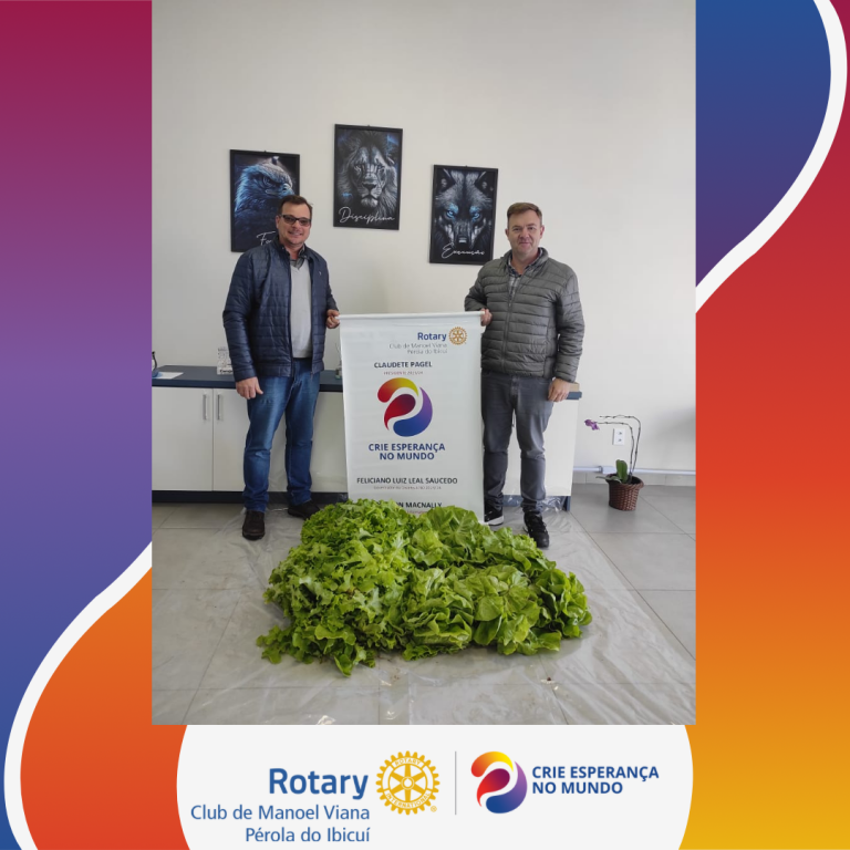 O Rotary Club de Manoel Viana Pérola do Ibicuí, em uma valiosa parceria com a Secretaria de Agricultura do Município, entregou mais de 40 pés de alface fresca e saudável para a Escola Estadual Manoel Viana. Essa iniciativa é um exemplo brilhante de como a comunidade pode se unir para promover a alimentação saudável e nutritiva nas escolas, contribuindo para o bem-estar e o desenvolvimento das crianças. Os pés de alface serão incorporados às refeições escolares, enriquecendo o cardápio com ingredientes locais. Essa colaboração entre o Rotary e a Secretaria de Agricultura demonstra o compromisso conjunto em promover uma educação alimentar de qualidade e incentivar a agricultura sustentável no município.