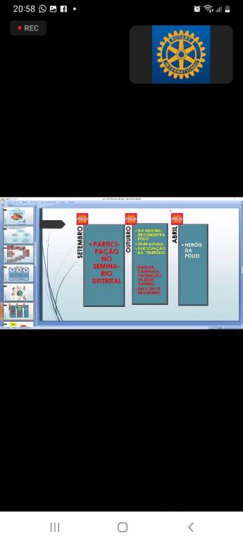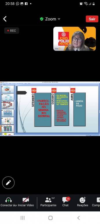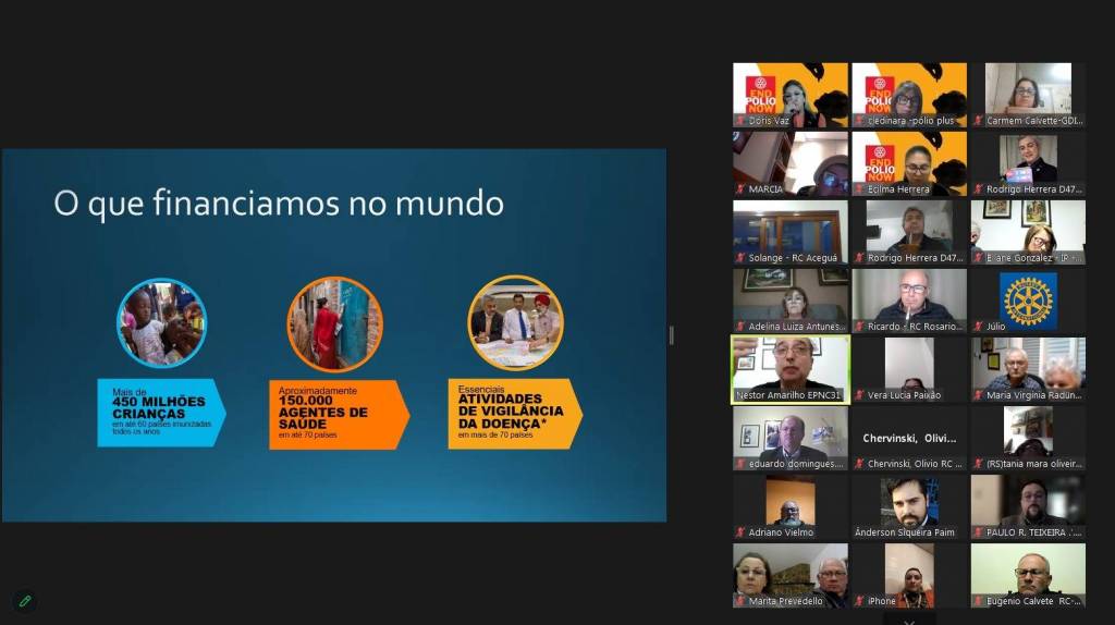 Na última segunda-feira dia 04 de setembro, foi transmitida via plataforma Zoom e também pelo YouTube o Seminário da Pólio Plus ano 2023, os companheiros do Rotary Club de Caçapava do Sul-Sentinela acompanham a transmissão via YouTube enquanto os companheiros Ânderson,Marilene,Neli e Rosimari e a Presidente Lia participaram da transmissão via zoom.