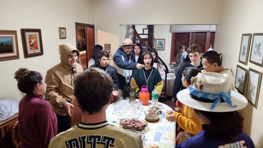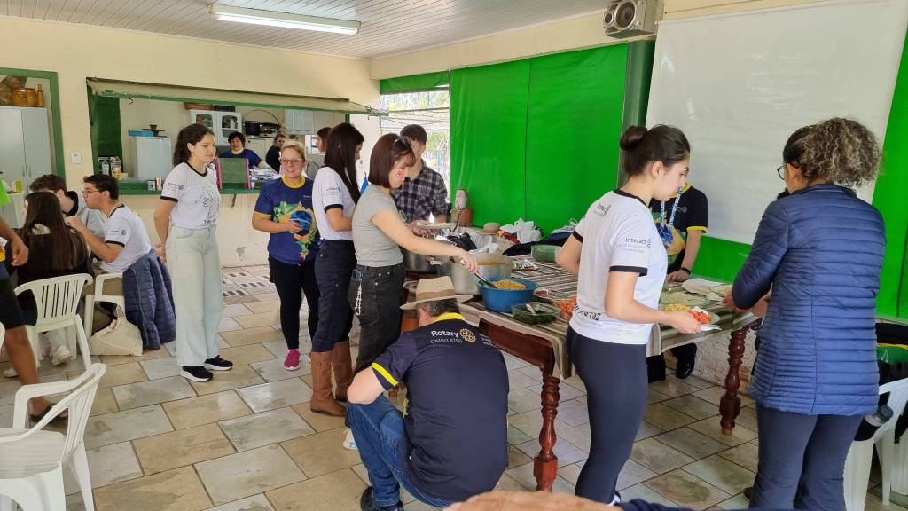 Diante destas incumbências realizamos um Treinamento com a Leonora Ritter de Abreu Chairperson 2023/2024 e Maria Cecília Kappel Vice Chairperson 2023/2024 Distrito 4780 com os 4 intercambistas oriundos dos países México, Taiwan e Alemanha e suas respectivas famílias hospedeiras e que teve a seguinte programação: a participação de uma reunião com o Interact Club Uruguaiana Fronteira Oeste, também uma atividade artesanal com o material para a comemoração do dia da Paz e a oficina de Culinária brasileira a cargo do Interact.