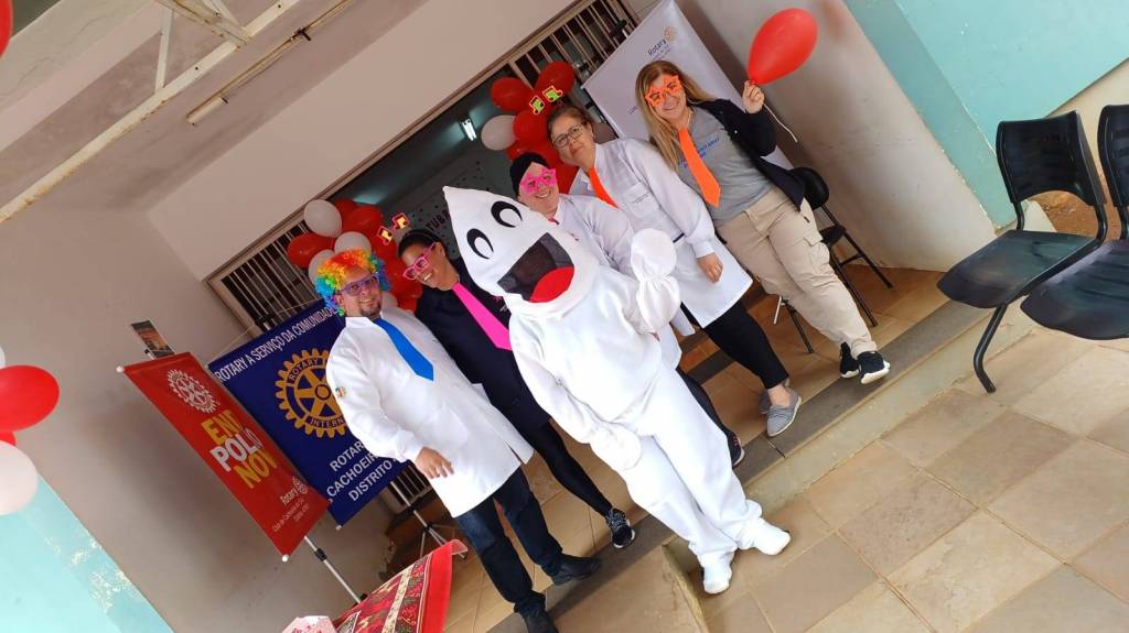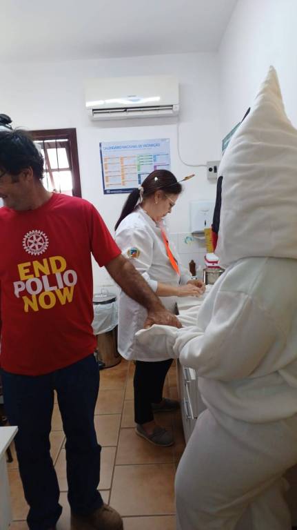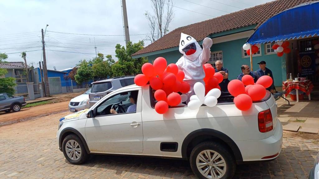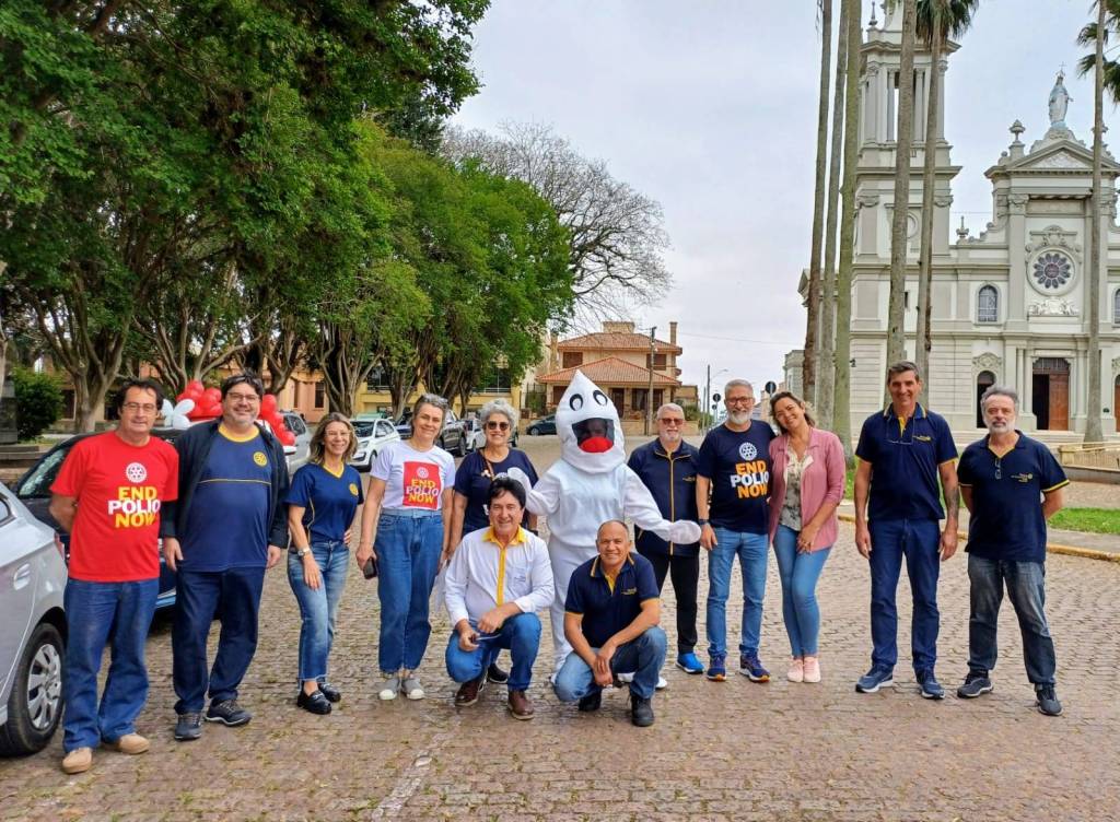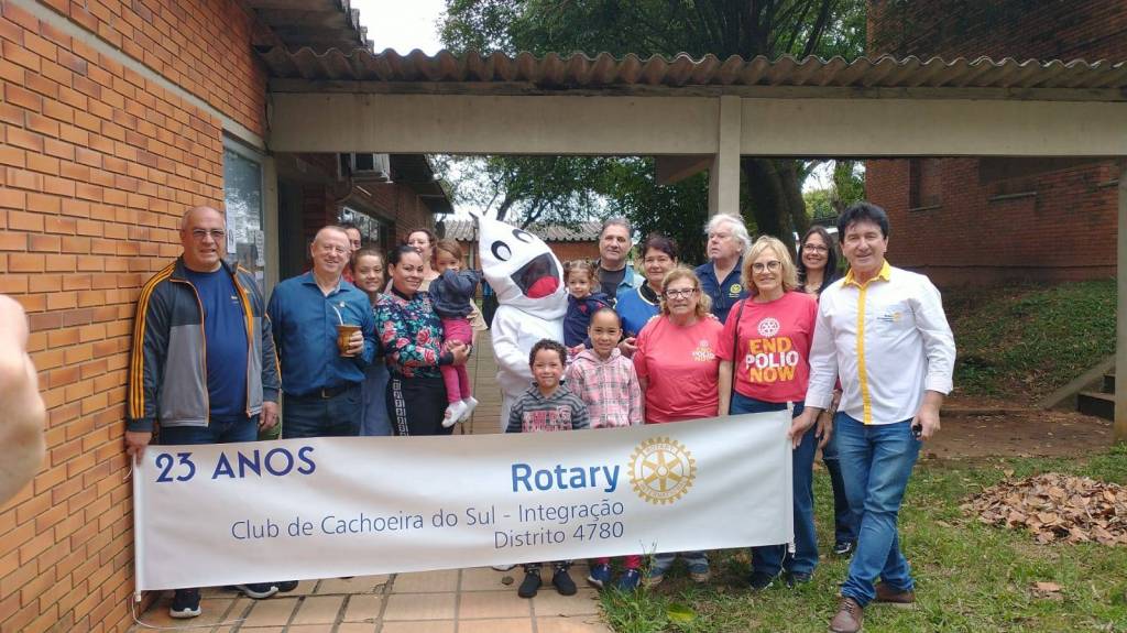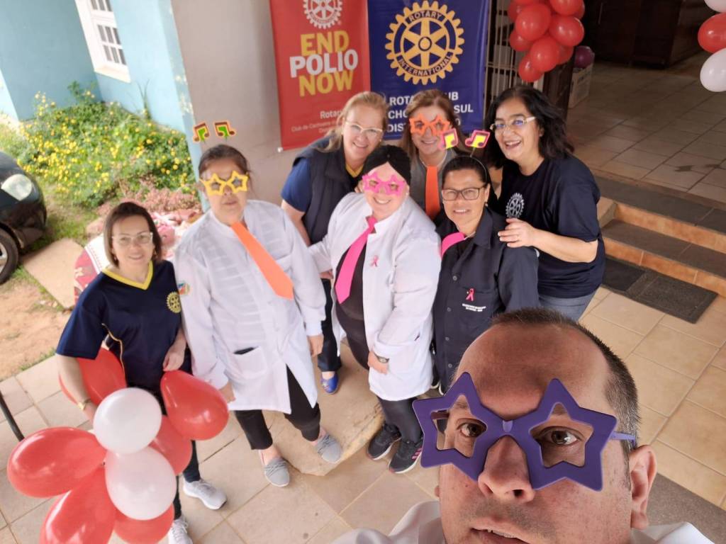 Sábado dia 21 de outubro de 2023,sábado de atenção total as unidades de saúde de Cachoeira do Sul e região:dia D de vacinação - Campanha Nacional de Multivacinação. Os associados do Rotary Club de Rotary de Cachoeira do Sul , Rotaract, Interact e Casa da Amizade,iniciaram seu sábado com uma carreata em prol da conscientização das vacinas,salientando que vacina salvam vidas.Todos os clubes de Cachoeira do Sul reuniram-se na praça central da cidade com o "Zé gotinha " para percorrer e e abrilhantar a cidade divulgando a campanha e chamando a atenção nos bairros para as unidades de saúde que estavam abertas para vacinação.Todos os sábados de outubro as unidades de saúde abriram pela manhã e, em especial, no dia D das 8h às 17horas sem intervalo ao meio dia, contando com o auxilio dos rotarianos, distribuidos em todas as unidades de saúde de Cachoeira do Sul. Muito lápis de cor, brinquedos, brincadeiras,balas e/ou pirolitos para o entretenimento da criançada enquanto aguardavam sua vez de vacinar...Ze Gotinha percorreu todas as unidades de saúde culminando na US14 unidade de responsabilidade dos associados do Rotary Club de Cachoeira dos Sul. A carreata foi coordenada pelo presidente do Rotary Club de Cachoeira do Sul Luis Felipe Martins Lopes e pela Governadora Assistente da área 10 do D 4780, Fátima Beatriz de Castro Santos também associada representativa do Rotary Club de Cachoeira do Sul.O dia D de Vacinação do Rotary Club de Cachoeira do Sul, culminou com uma mateada junto ao bairro da unidade de saúde US14 a fim de que os adultos que ali foram levar suas crianças também fossem agraciados ganhando erva mate e/ou fazendo e compartilhando seu chumarrão ali mesmo, junto a sua comunidade