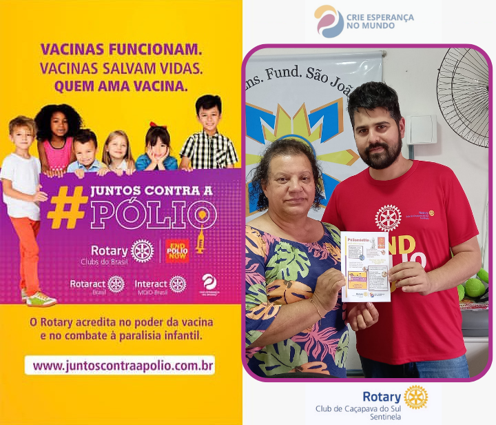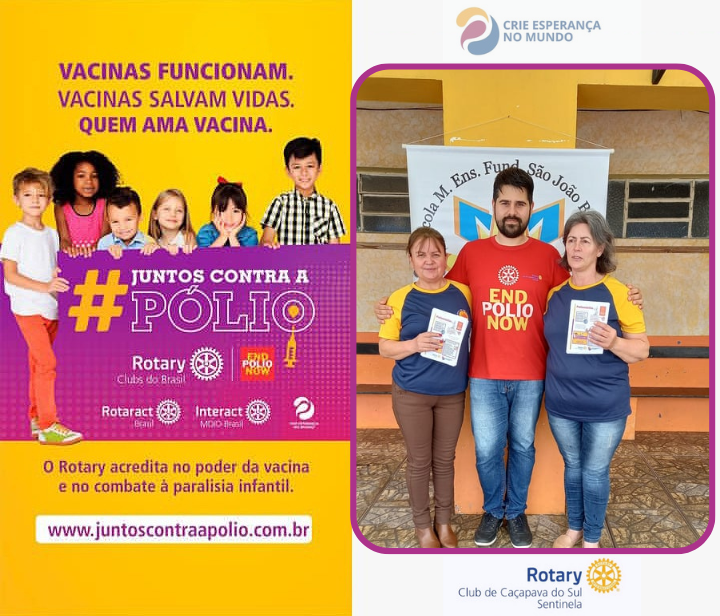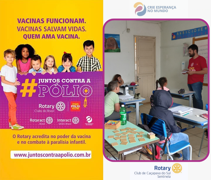 Hoje dia 24 de outubro é o dia internacional de combate a poliomielite, Pensando nisso o Rotary Club de Caçapava do Sul-Sentinela, iniciou um projeto de conscientização nas escolas e creches, com o objetivo de conscientizar os pais e responsáveis sobre a poliomielite.