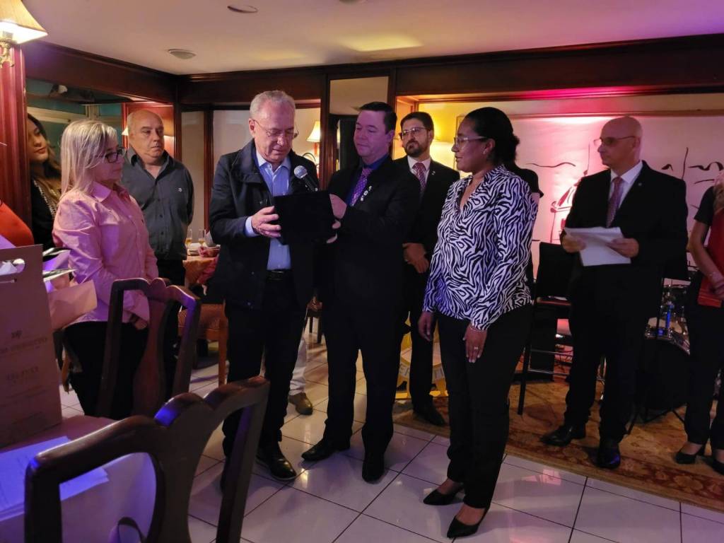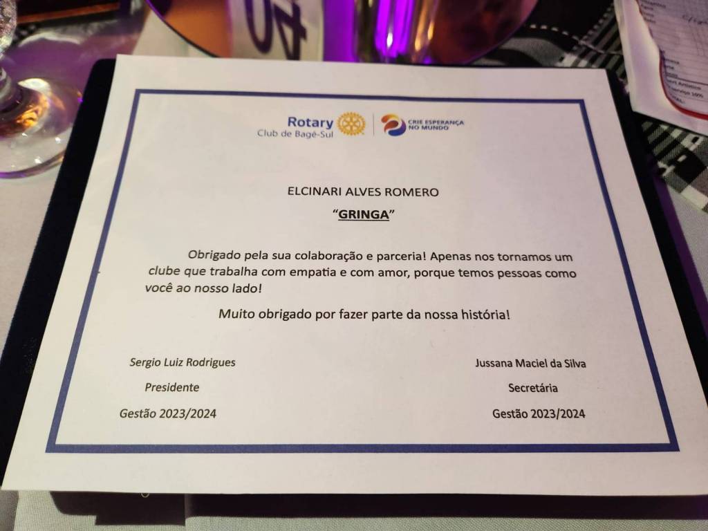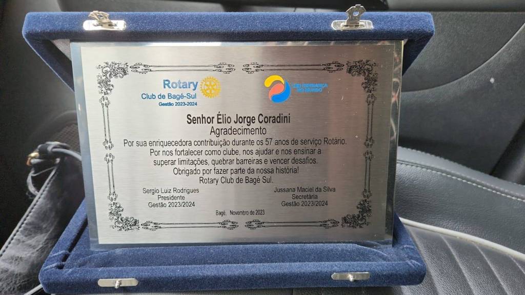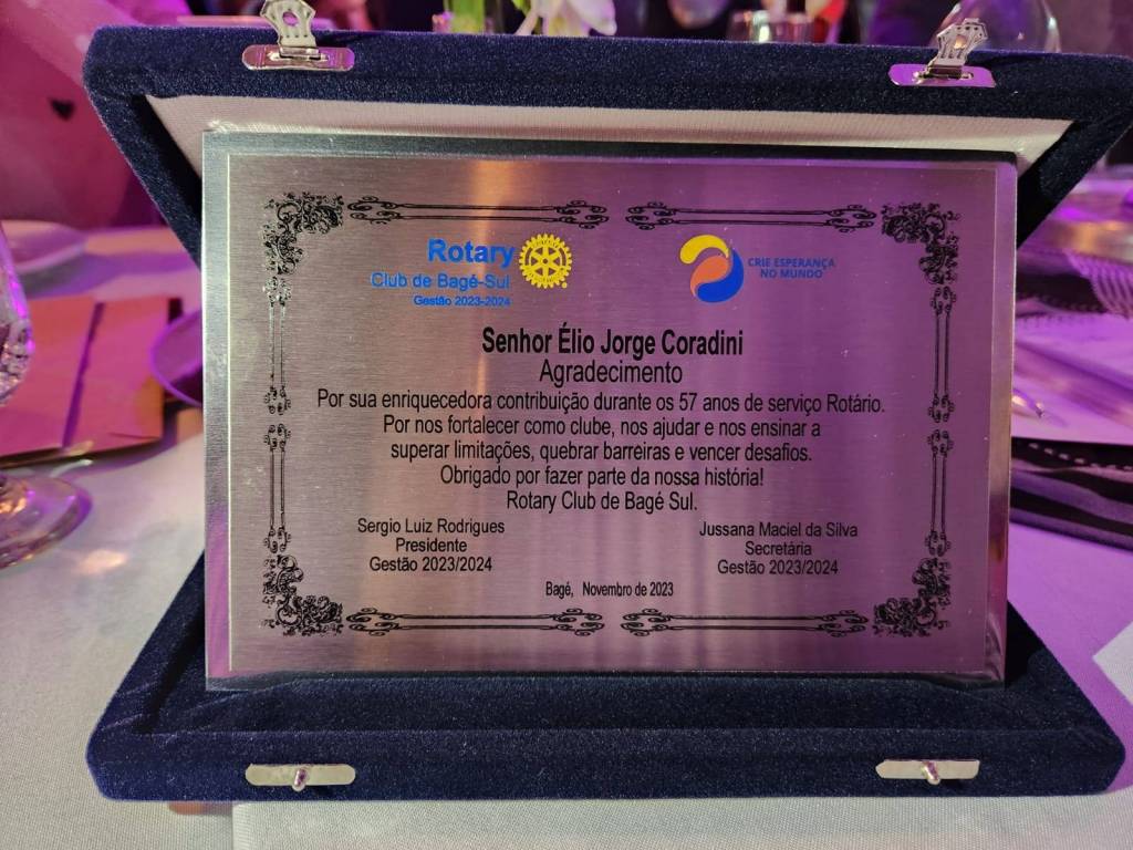 No dia 11/11/2023 no Restaurante do Hotel Obino, reuniram-se os 11 CLubes de Rotary, 2 Rotaracty e 3 Interacty, para o evento de fechamento da visita do nossso Governador Feliciano Luiz Leal Saucedo e sua esposa Dalila. Esse evento foi muito marcante para o clube pois além da visita nosso governador, também tivemos o orgulho de homenagear nosso companheiro Elio Coradini pelos seus 57 anos de rotariano. Momento impar na festiva, onde a emoção tomou conta da festiva. Nosso companheiro Elio coradini foi presenteado com uma placa do clube e também do nosso presidente RI saudando-o pelo seus anos dedicado ao Rotary.