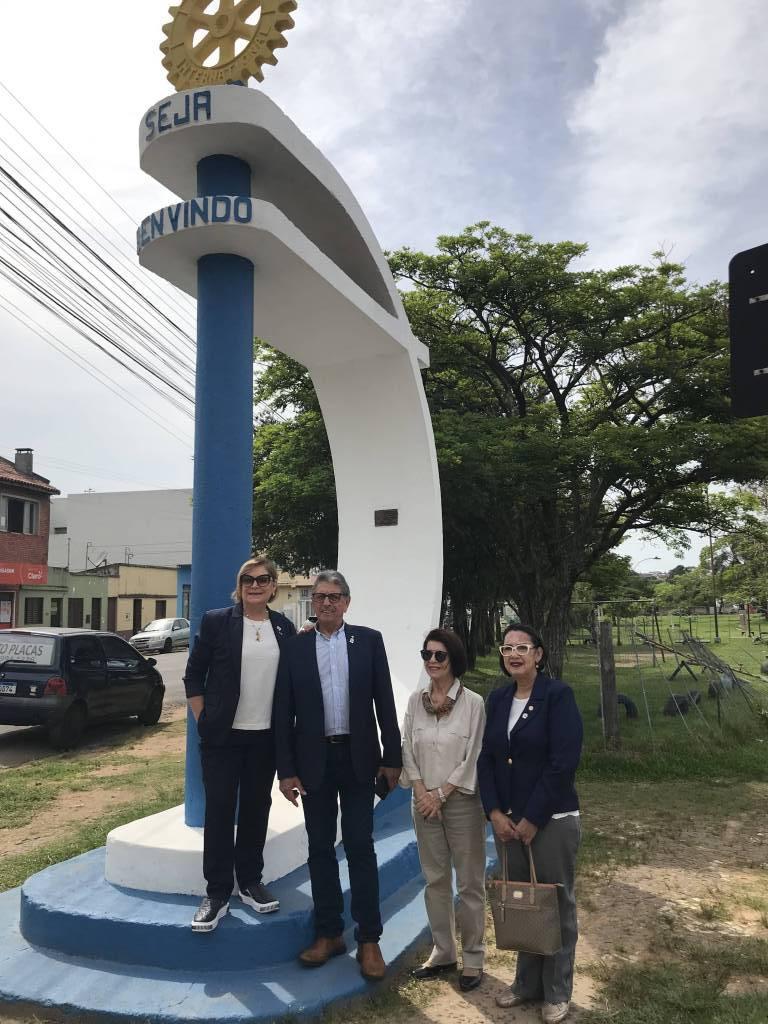 O Governador Saucedo em cumprimento de sua agenda visita o Marco Rotário juntamente com sua esposa Dalila, GA Hiloir Coelho, EGD e atual Presidente do Rotary Club de Livramento Sul Cecilia Amaral e Rotaract.