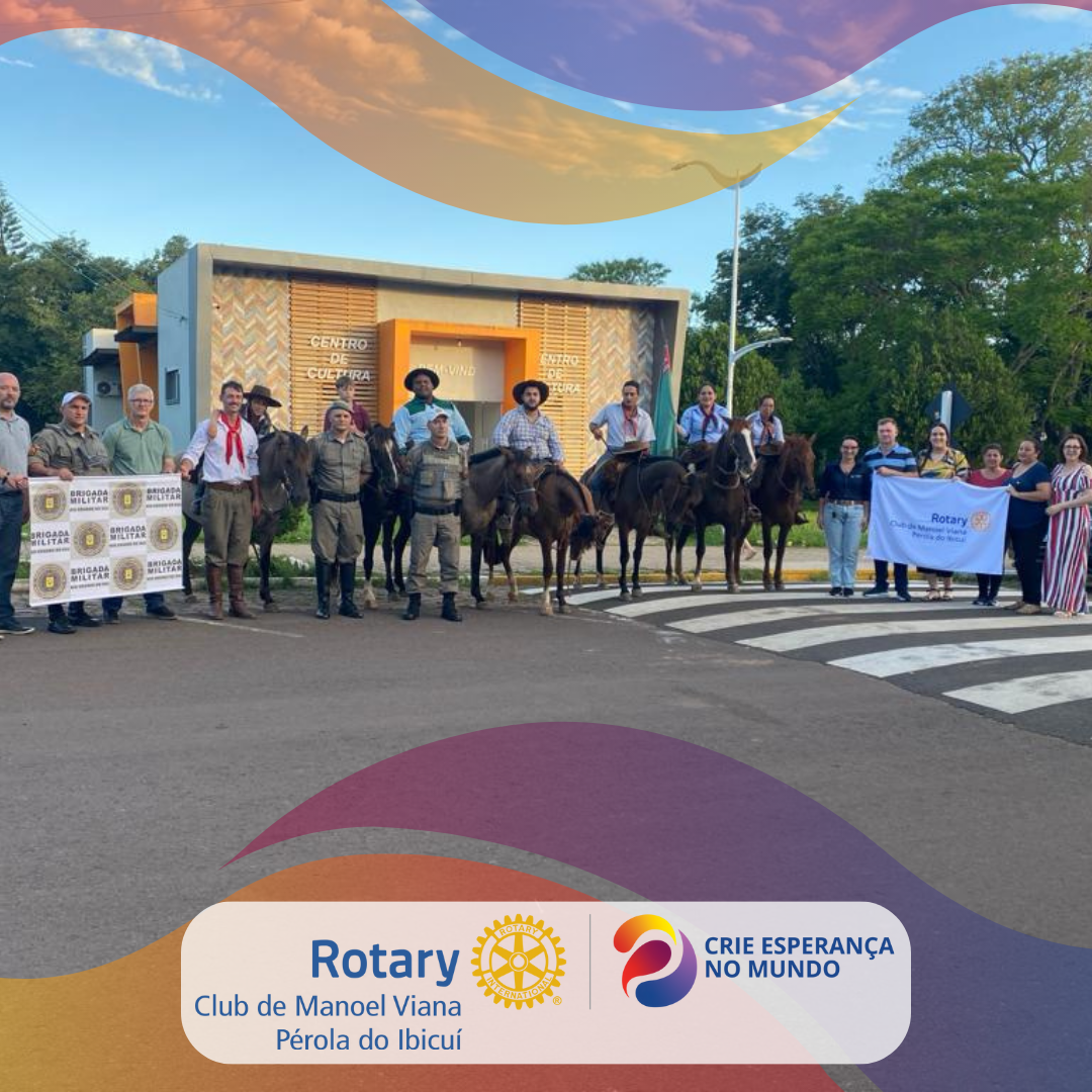 Um agradecimento especial ao idealizador da Cavalgada, Jonathan Manzoni, pela destinação dos alimentos ao Rotary para nós assistirmos as famílias que necessitam. Agradecimento especial a Brigada Militar pelo apoio incansável. Gratidão, ainda aos cavalarianos que fizeram toda a diferença, unindo as Entidades com um único fim: arrecadação de alimentos para as famílias que mais precisam.