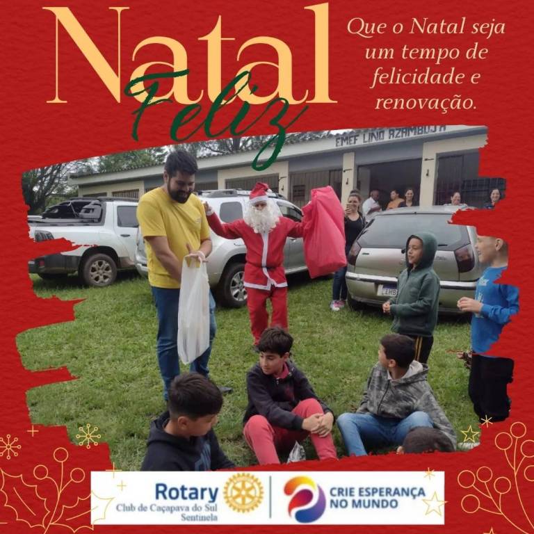 Hoje os companheiros do Rotary Club de Caçapava do Sul-Sentinela visitaram a Escola Municipal de Ensino Fundamental Lino Azambuja e realizaram a entrega de presentes através do Projeto Natal Feliz.