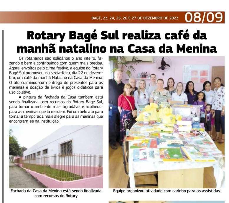 Jornal MIniano destacou, em suas páginas, a entrega da primeira etapa da revitalização da Casa da Menina pelo Rotary Club de Bagé Sul.