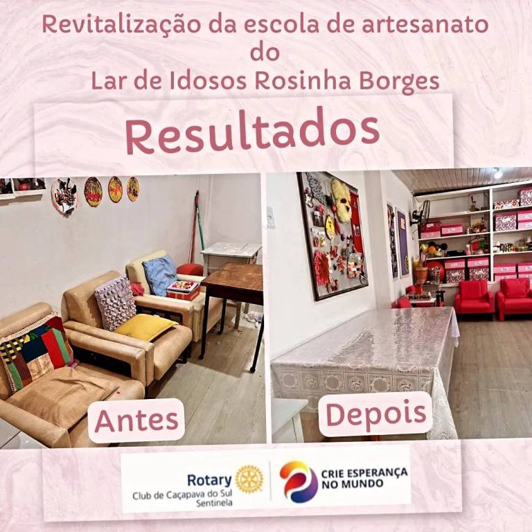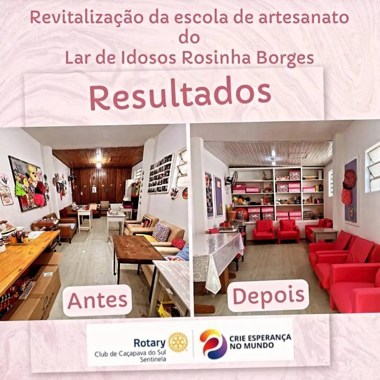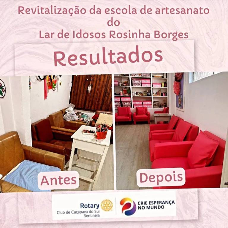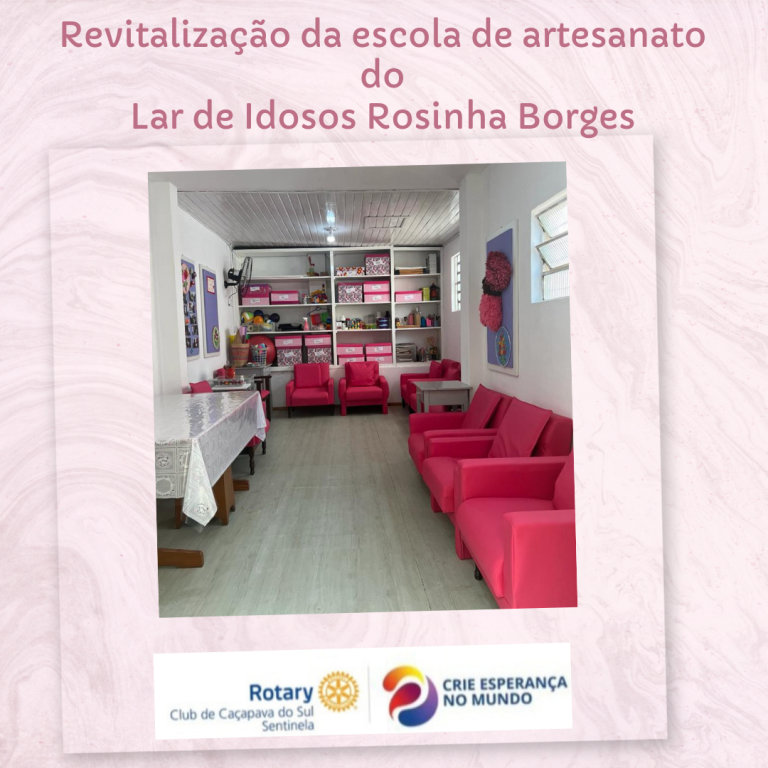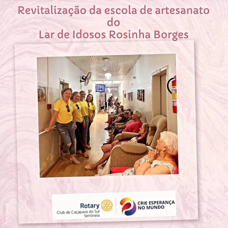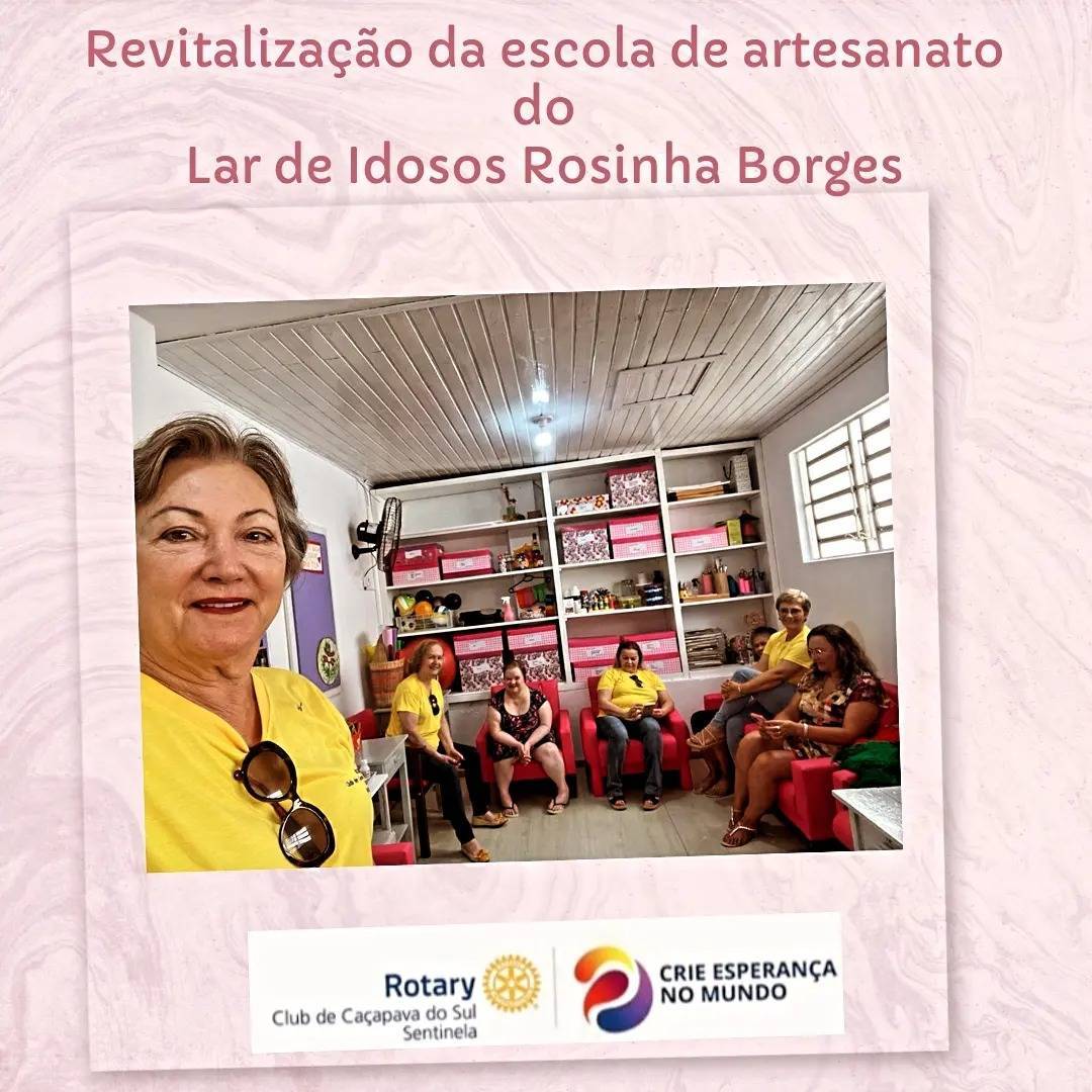 O Rotary Club de Caçapava do Sul-Sentinela destinou R$ 5.000,00 através de recursos próprios para ajudar na revitalização da escola de artesanato que é uma oficina interna do Lar de Idosos Rosinha Borges. Este valor foi arrecadado através dos lucros do 2° Jantar Baile do Cordeiro e Azeite de Oliva, realizado no dia 06 de outubro de 2023.