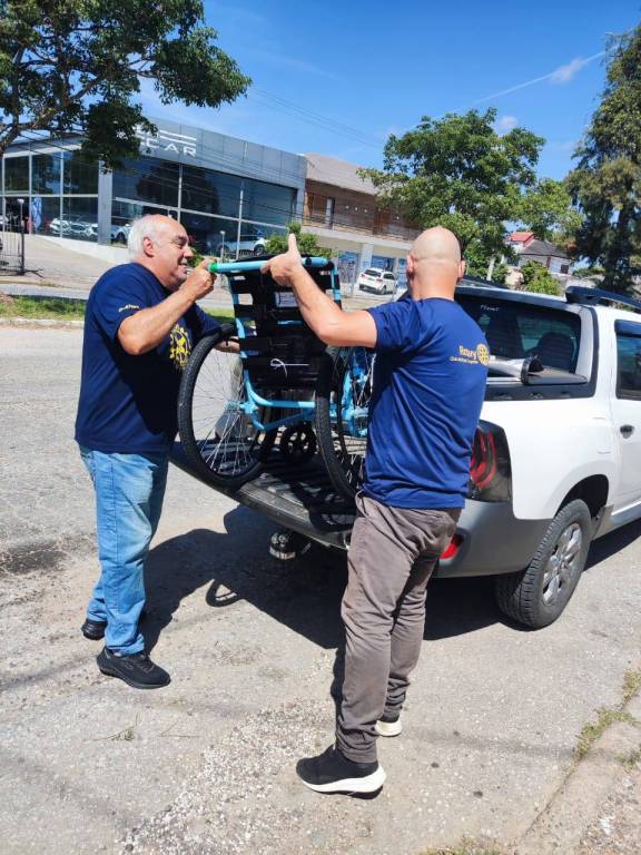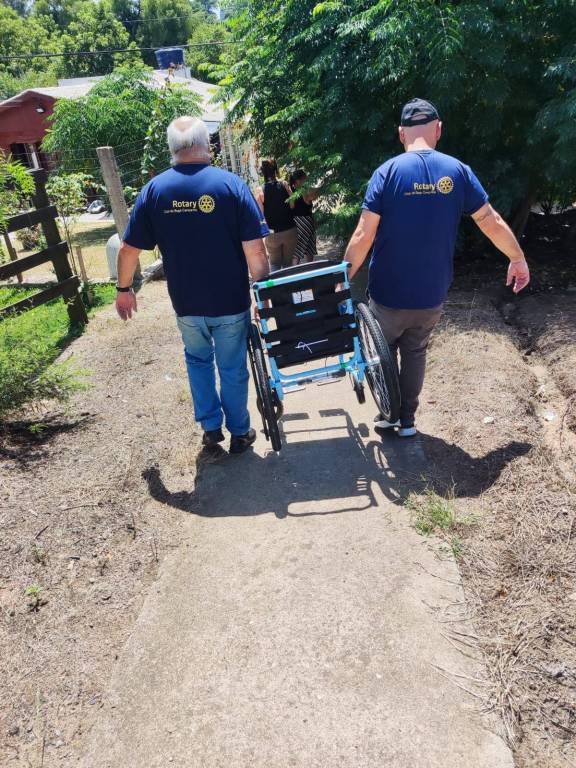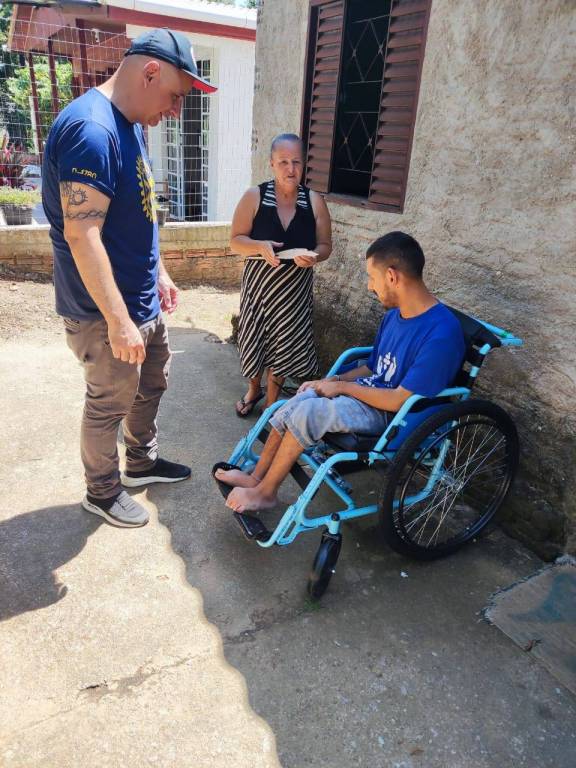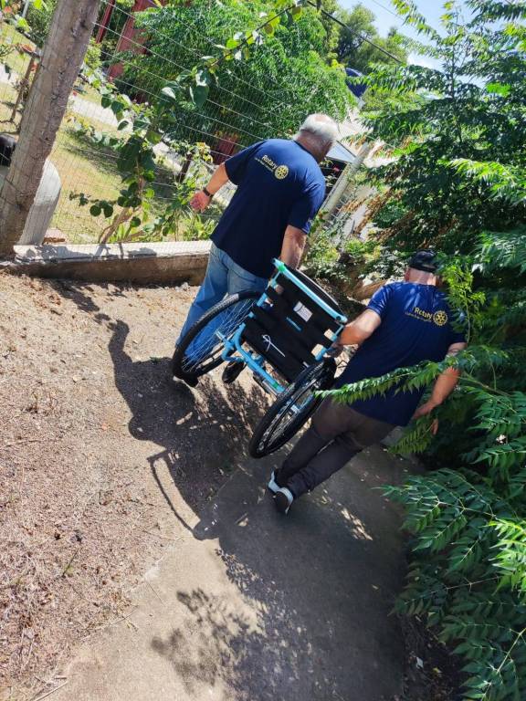 Associados do clube, a Governadora Assistente da área 7 de RI Andréia e a Fernanda (APAE), foram até a sua residência, que fica mais de 7 km do centro da cidade de Bagé, para fazer a entrega da cadeira de rodas do projeto Mobilidade para Todos.