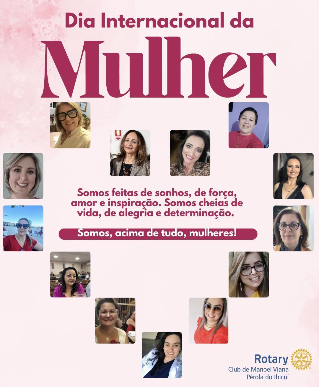 💐 No Dia Internacional da Mulher, gostaríamos de dedicar uma homenagem a todas as mulheres, em especial nossas Rotarianas que, com sua coragem, determinação e amor, transformam o mundo ao seu redor. Vocês são exemplo de força, sabedoria e resiliência. Que cada uma de vocês continue a brilhar, a conquistar seus sonhos e a inspirar as gerações futuras. Juntas, somos capazes de construir um mundo mais justo e igualitário.