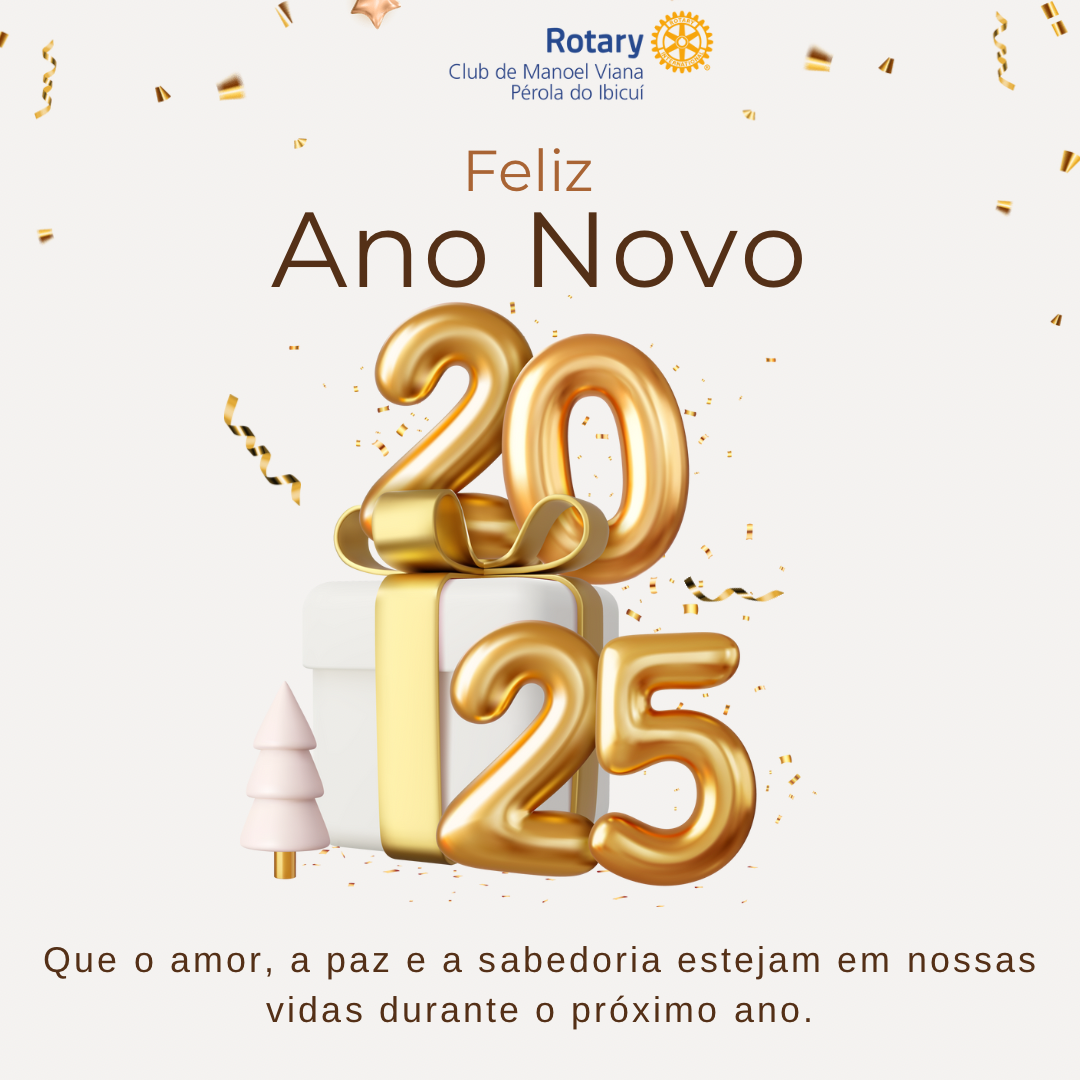O Rotary Club de Manoel Viana - Pérola do Ibicuí deseja a você e sua família um ano repleto de saúde, paz e prosperidade. Que em 2025 possamos continuar servindo com propósito, fortalecendo laços de amizade e promovendo mudanças positivas em nossas comunidades e no mundo.