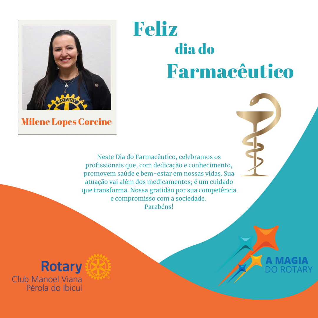 Queremos desejar um Feliz dia do Farmacêutico para nossa querida Rotariana Milene Corcine! Agradecemos por sua dedicação e compromisso em cuidar da saúde das pessoas. Que seu dia seja repleto de reconhecimento e alegria!!! 🪄💫