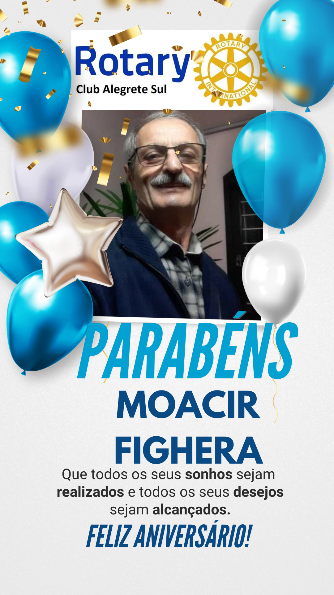Rotary Club Alegrete Sul parabeniza o companheiro Moacir Fighera pelo aniversário