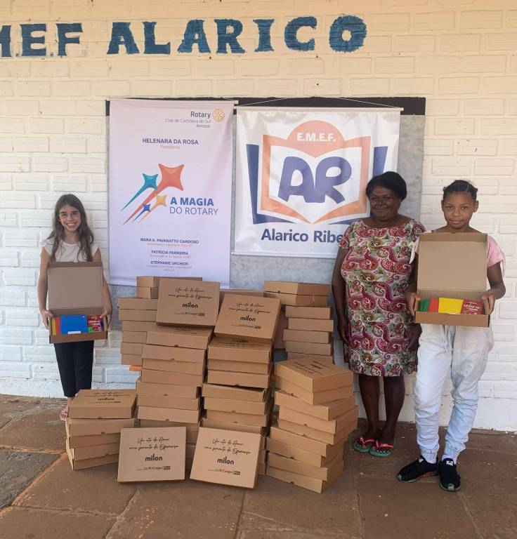 No dia 20 de fevereiro de 2025, pela manhã foram entregues 70 (setenta) kits escolares na EMEF Alarico Ribeiro, Bairro Mauá, Cachoeira do Sul, pelo Rotary Club de Cachoeira do Sul Arrozais.