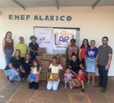 A Direção da EMEF Alarico Ribeiro, Sra. Graziela Nunes Noronha de Freitas-Diretora e, Ordiliane da Silva Rodrigues-Vice-diretora, juntamente com pais e alunos representativos da comunidade escolar receberam os 70 kits escolares do Rotary Club de Cachoeira do Sul Arrozais, pela Presidente Ano Rotário 2024-2025, Helenara da Rosa, com as companheiras: Vera Lúcia Paixão, Presidente eleita Ano Rotário 2025-2026; Cátia Sartório e Valdívia Carrilho.