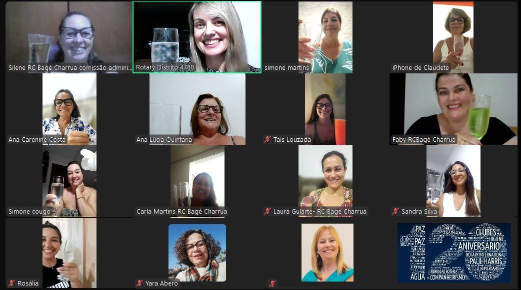 Terça feira dia 25 de fevereiro pela plataforma Zoom o Rotary Bagé Charrua realizou sua reunião semanal, no final da reunião às companheiras fizeram um brinde pelos 120 anos do Rotary.
