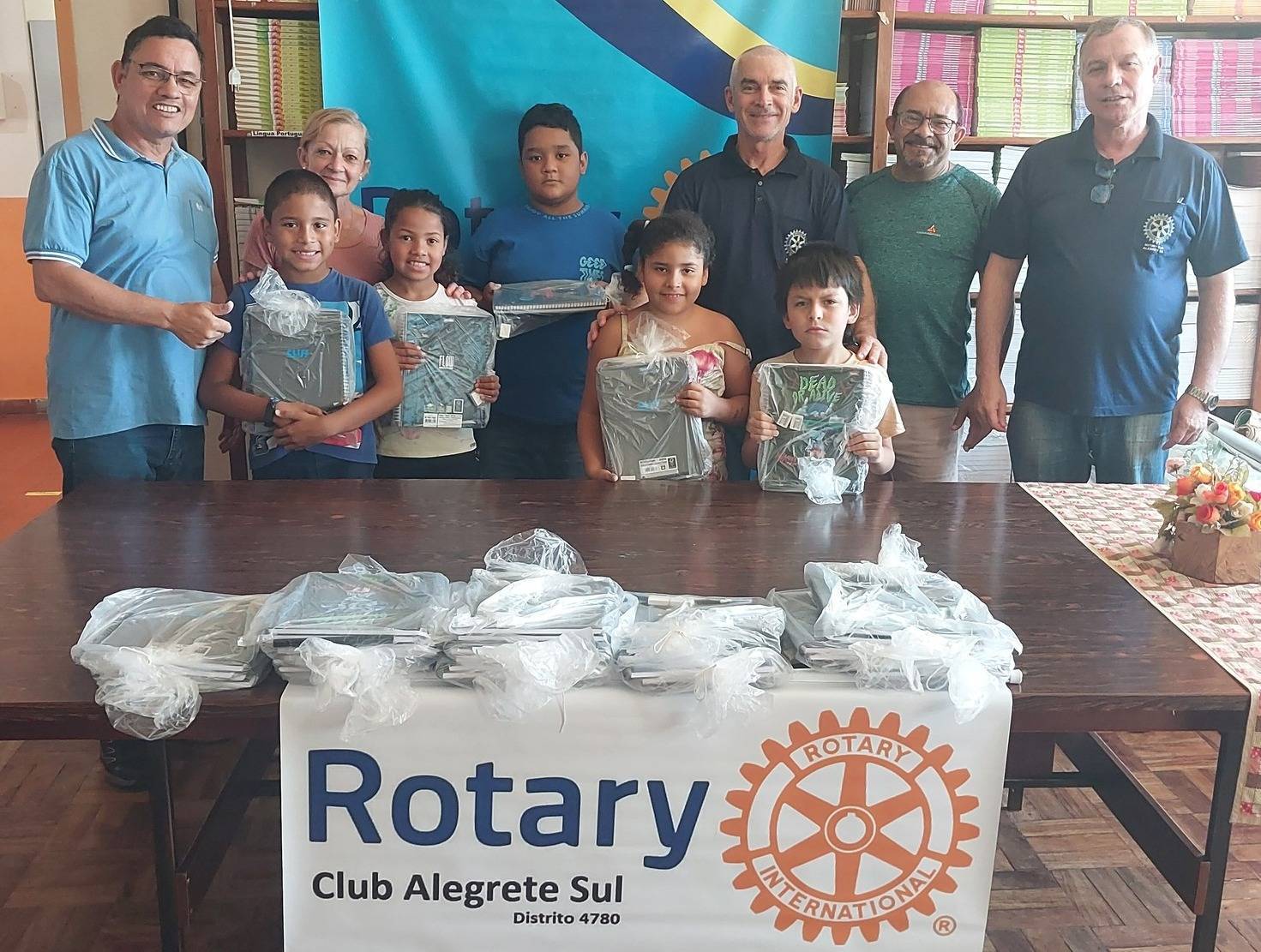 Continuando seu trabalho social pela educação, o Rotary Club Alegrete Sul esteve neste dia 19 de fevereiro de 2025 na Escola Municipal Princesa Isabel realizando a entrega de um conjunto de material escolar a alguns alunos indicados pela Direção e que precisavam deste apoio neste momento. Os recursos para aquisição deste material são oriundos das arrecadações realizadas na Exposição Feira do Alegrete em parceria com o Sindicato Rural de Alegrete. A Escola Municipal Princesa Isabel teve na sua construção a importante atuação do Rotary Club Alegrete Sul onde ainda hoje possui uma placa deste reconhecimento pela Administração Municipal.