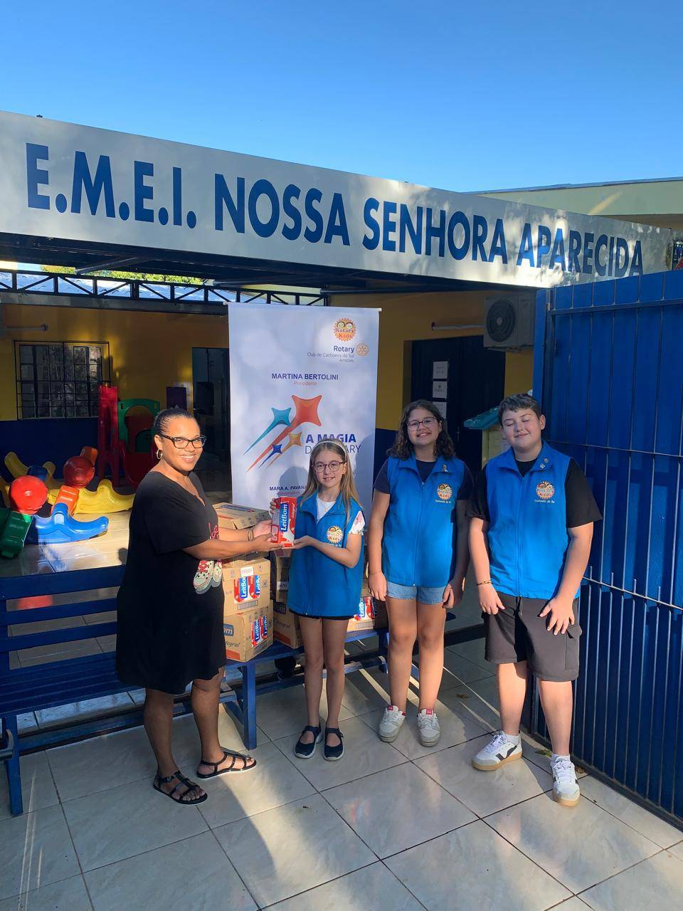 No dia 18 de março de 2025 foi entregue pela Presidente do Rotary Kids de Cachoeira do Sul, Martina Bertolini, a doação de 10 (dez) caixas de leite integral na EMEI N. Sra. Aparecida, no Bairro Bom Retiro.