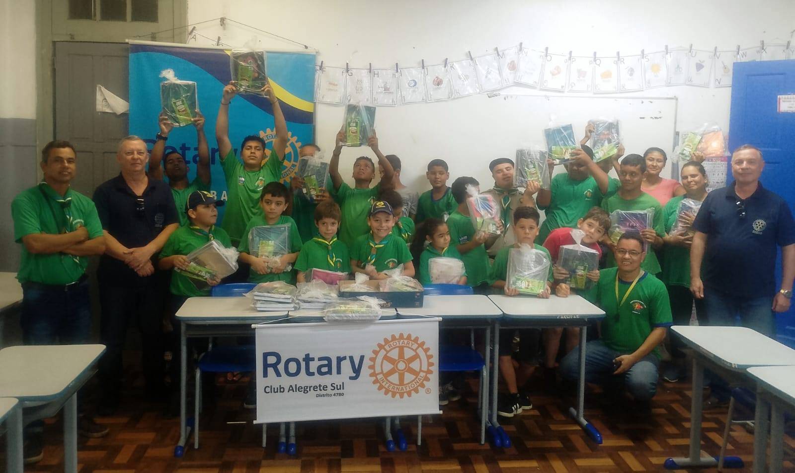 Continuando seu trabalho social pela educação, o Rotary Club Alegrete Sul esteve neste dia 29 de março de 2025 nas atividades do Grupo Escoteiro Honório Lemes realizando a entrega de um conjunto de material escolar aos escoteiros. Os recursos para aquisição deste material são oriundos das arrecadações realizadas na Exposição Feira do Alegrete em parceria com o Sindicato Rural de Alegrete. O Grupo Escoteiro Honório Lemes é apoiado pelo Rotary Alegrete Sul e realiza um trabalho social a 35 anos na comunidade, especialmente nas ações do Banco de Alimentos de Alegrete. O Rotary Club Alegrete Sul continua firme em seus propósitos, realizando um serviço social à comunidade em diversas áreas. Fundado em 17 de novembro de 1969 (hoje com 55 anos de serviço comunitário), o Rotary Club Alegrete Sul faz parte do Rotary Internacional, associação de clubes de serviços cujo objetivo declarado é unir voluntários a fim de prestar serviços humanitários e promover valores éticos e a paz a nível internacional. Existem mais de 34 mil Clubes de Rotary no mundo, com cerca de 1,3 milhões de membros.