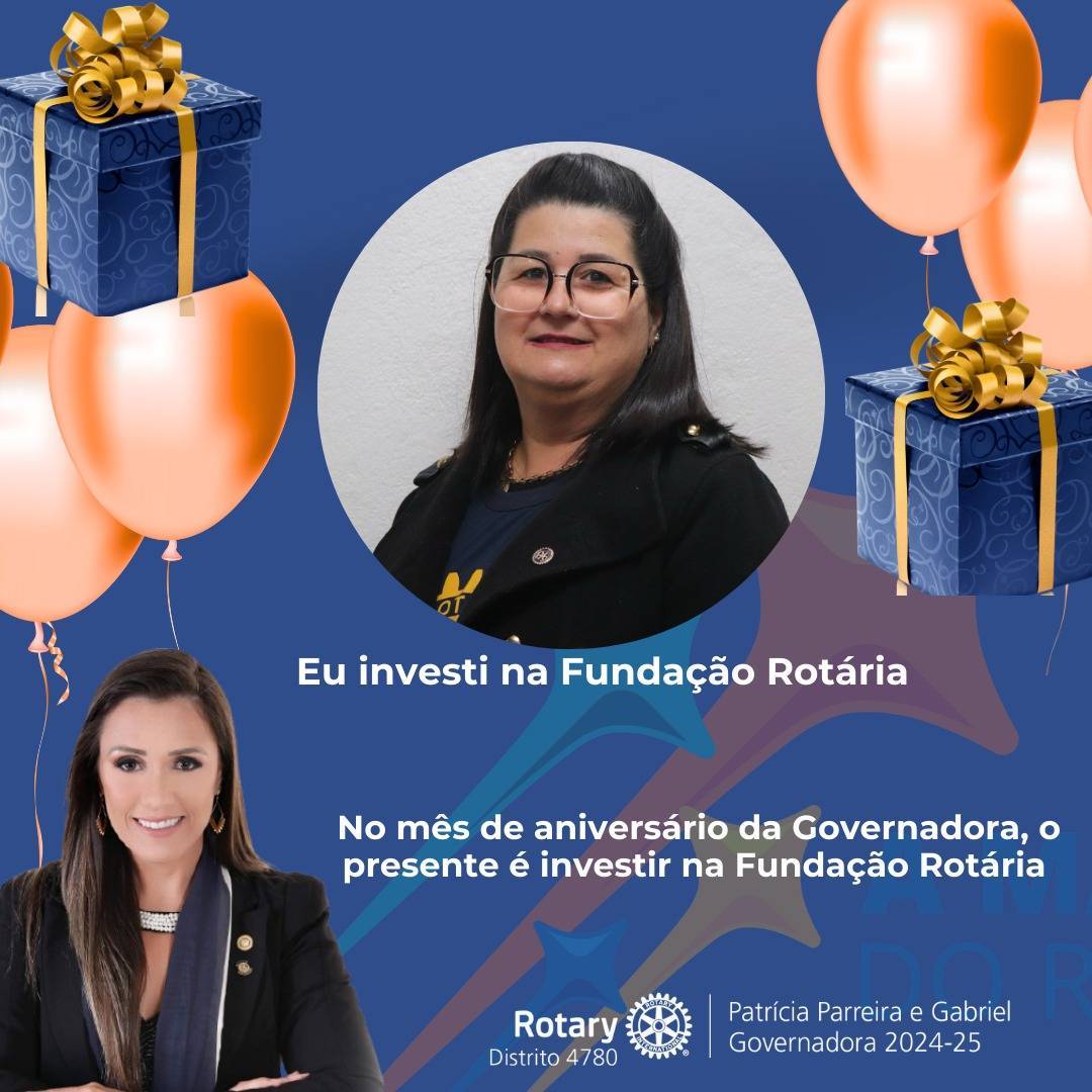 Doação para a Fundação Rotária em comemoração ao aniversário da Governadora Patrícia 🥳🎂