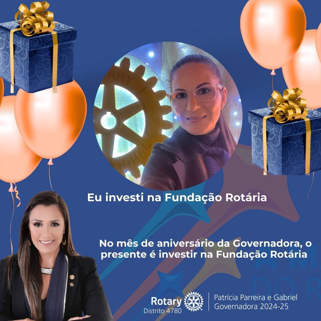 Doação para a Fundação Rotária em comemoração ao aniversário da Governadora Patrícia 🥳🎂