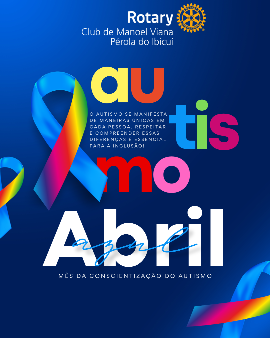 Neste Abril Azul, vamos reforçar a importância do diagnóstico precoce, do acesso a terapias adequadas e, principalmente, da construção de um mundo mais inclusivo. O conhecimento é a chave para combater o preconceito e permitir que todas as pessoas tenham a oportunidade de viver com dignidade e autonomia.