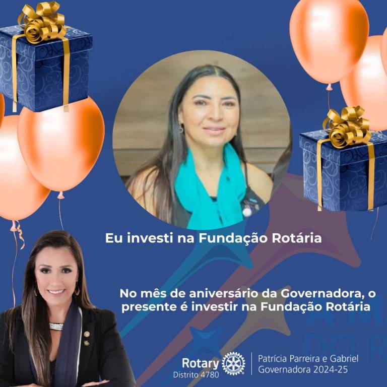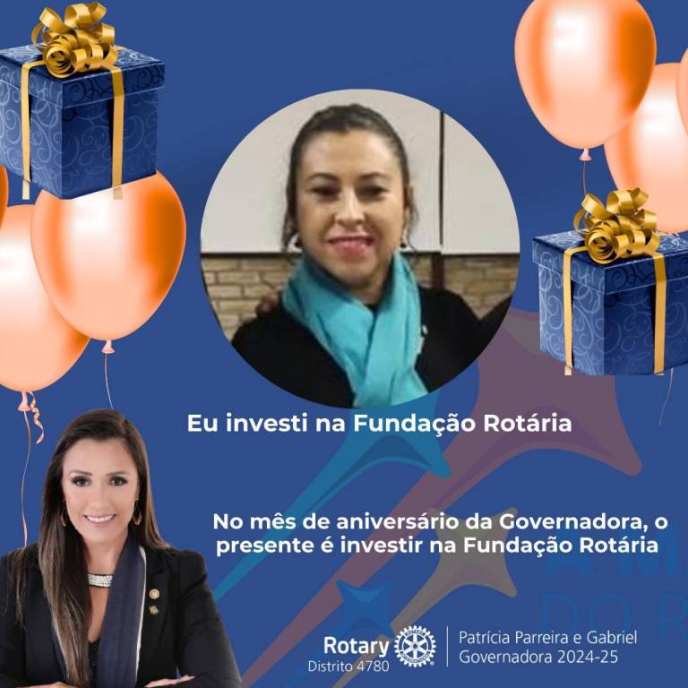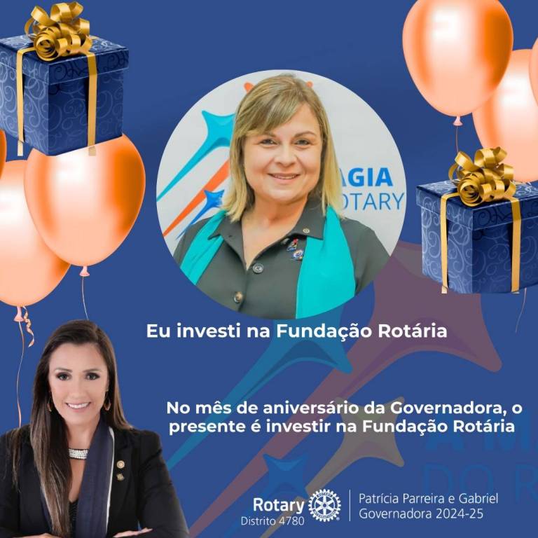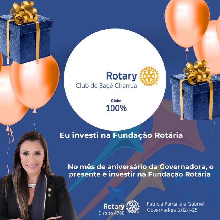 No mês de aniversário da nossa Governadora Patrícia Parreira do Distrito 4780, o Rotary Bagé Charrua conseguiu investir na Fundação Rotária com 100% das companheiras realizando a doação.