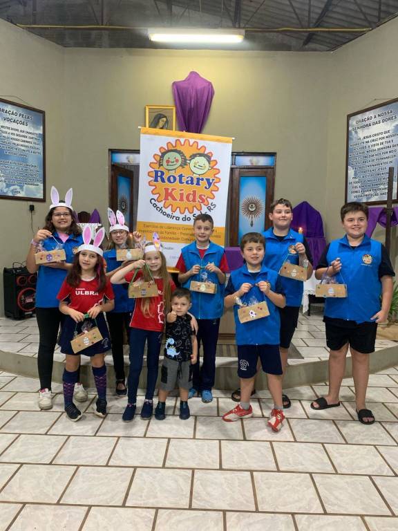 No dia 16/4, foi a culminância do projeto de Páscoa dos associados do Rotary Kids, levaram 55 cestinhas de Páscoa, por eles confeccionadas, para as crianças da Comunidade Dores.